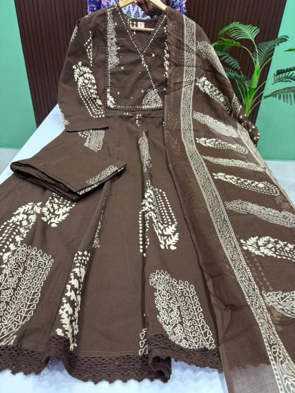 Cotton Anarkali With Pant & Dupatta Set Fabric: Cotton Anarkali Length : 49 inches Pant Length : 37 to 39