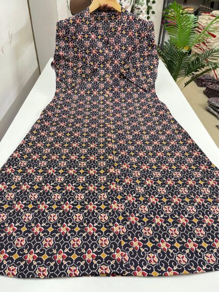 Kalamkari Printed A Line Model Kurti With Side cut Fabric : Pure Cotton Sleeves: Elbow length Length 45 inches