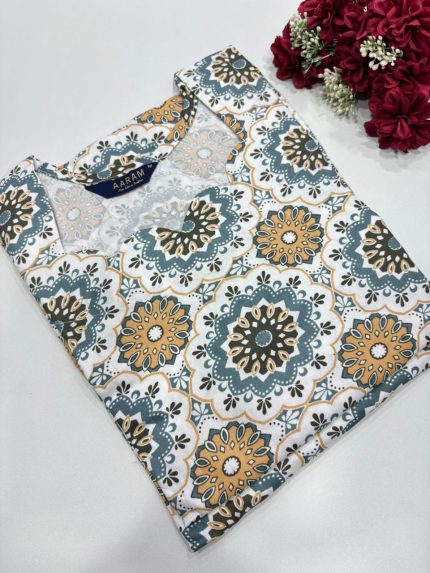 Regular Wear Side Open Kurti Sleeve-3/4 Material – Rayon LENGTH 44 INCHES SIZE CHART M 38 INCHES L 40 INCHES