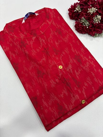Semi Raw Silk Kurti-RED