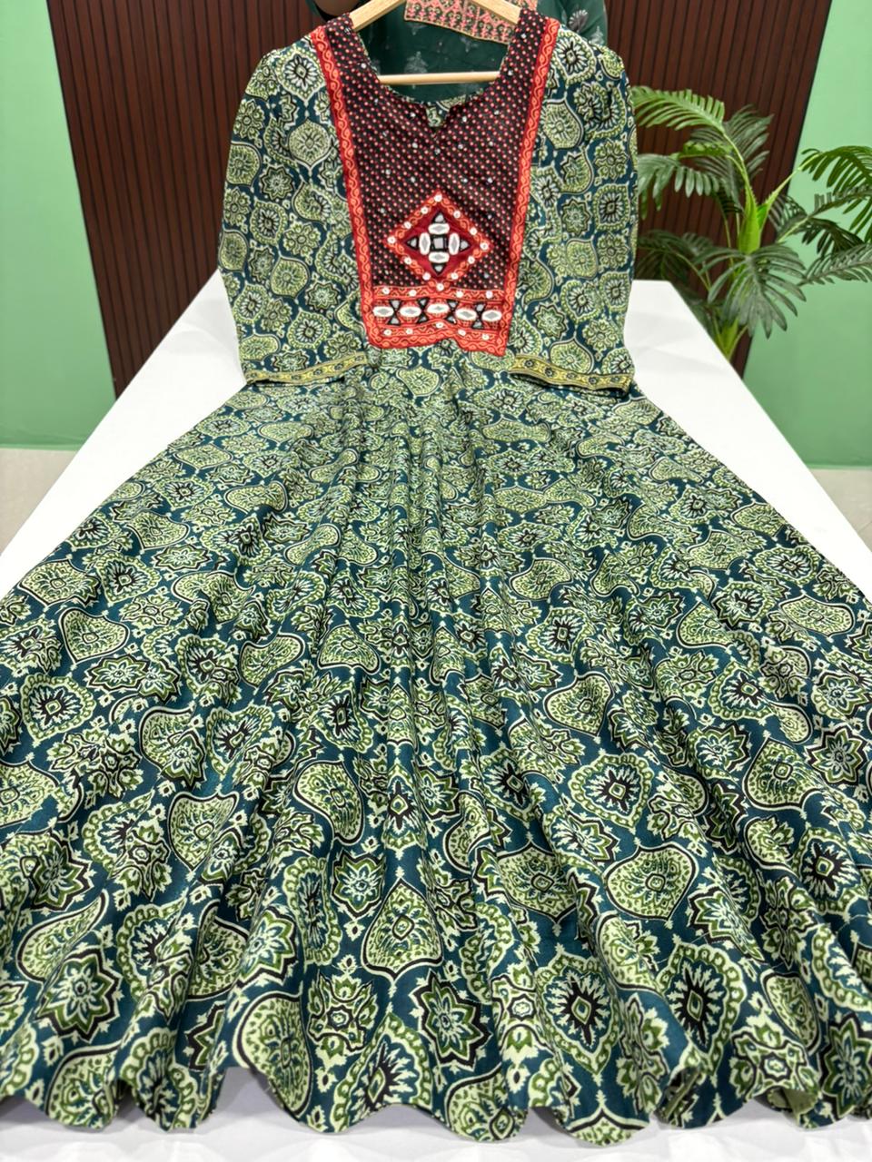 Be the first to review “Ajrak Style Flared Anarkali – GREEN” Cancel reply