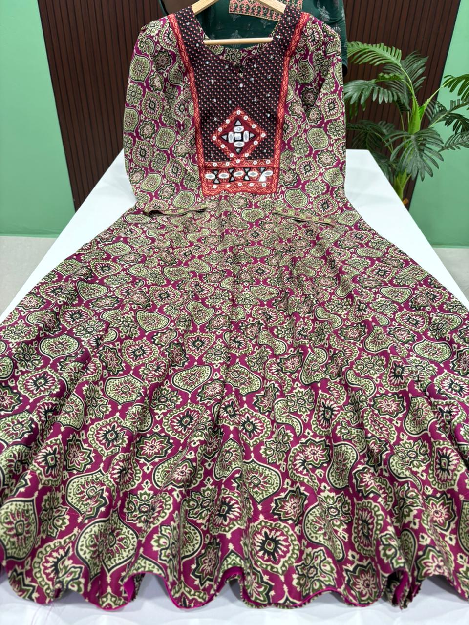 Ajrak Style Full length Flared Anarkali