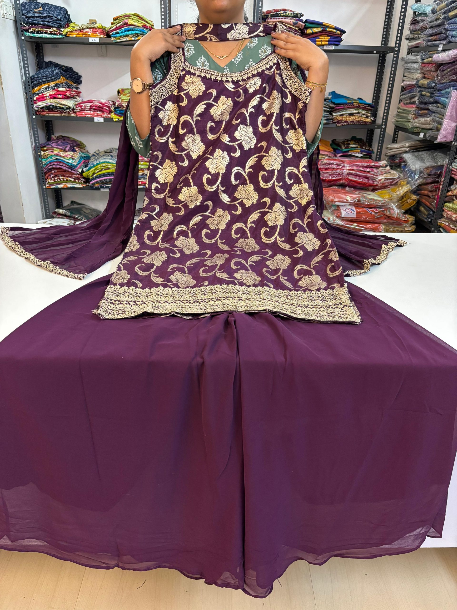 Be the first to review “Brocade Banarasi Floral Spaghetti Style Sharara Suit-SLEEVELESS” Cancel reply