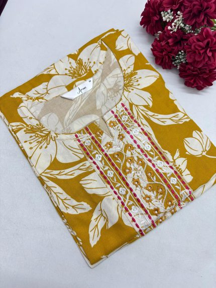 Office Wear Rayon Side Open Kurti Embroidery Work on the yoke portion Fabric : Rayon Length: 41 to 42 inches