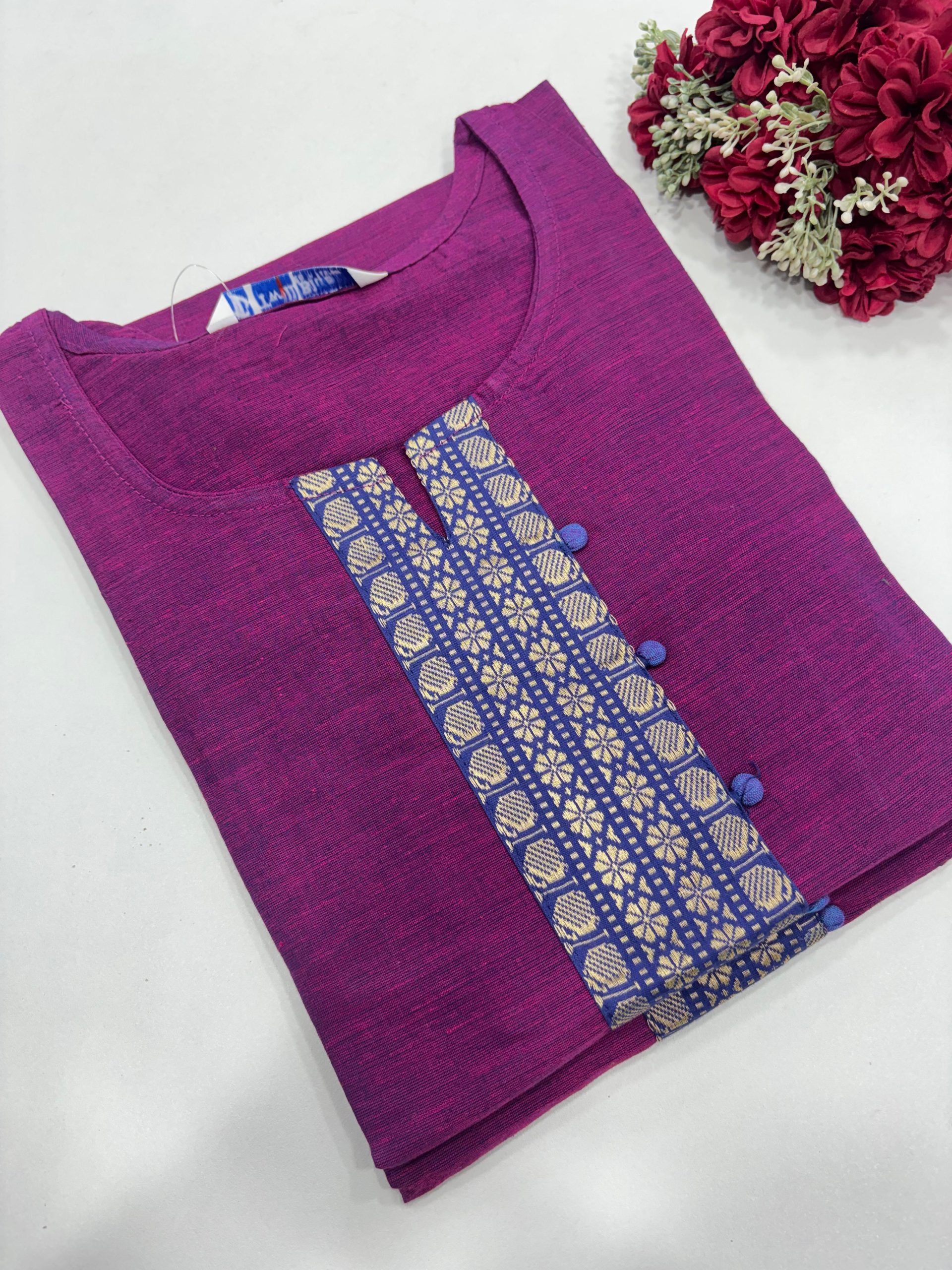 Slub Cotton Side Open Kurti With Beautiful Neck design Sleeve – 3/4th Sleeves Fabric: Slub Cotton Top Length: 41 inches