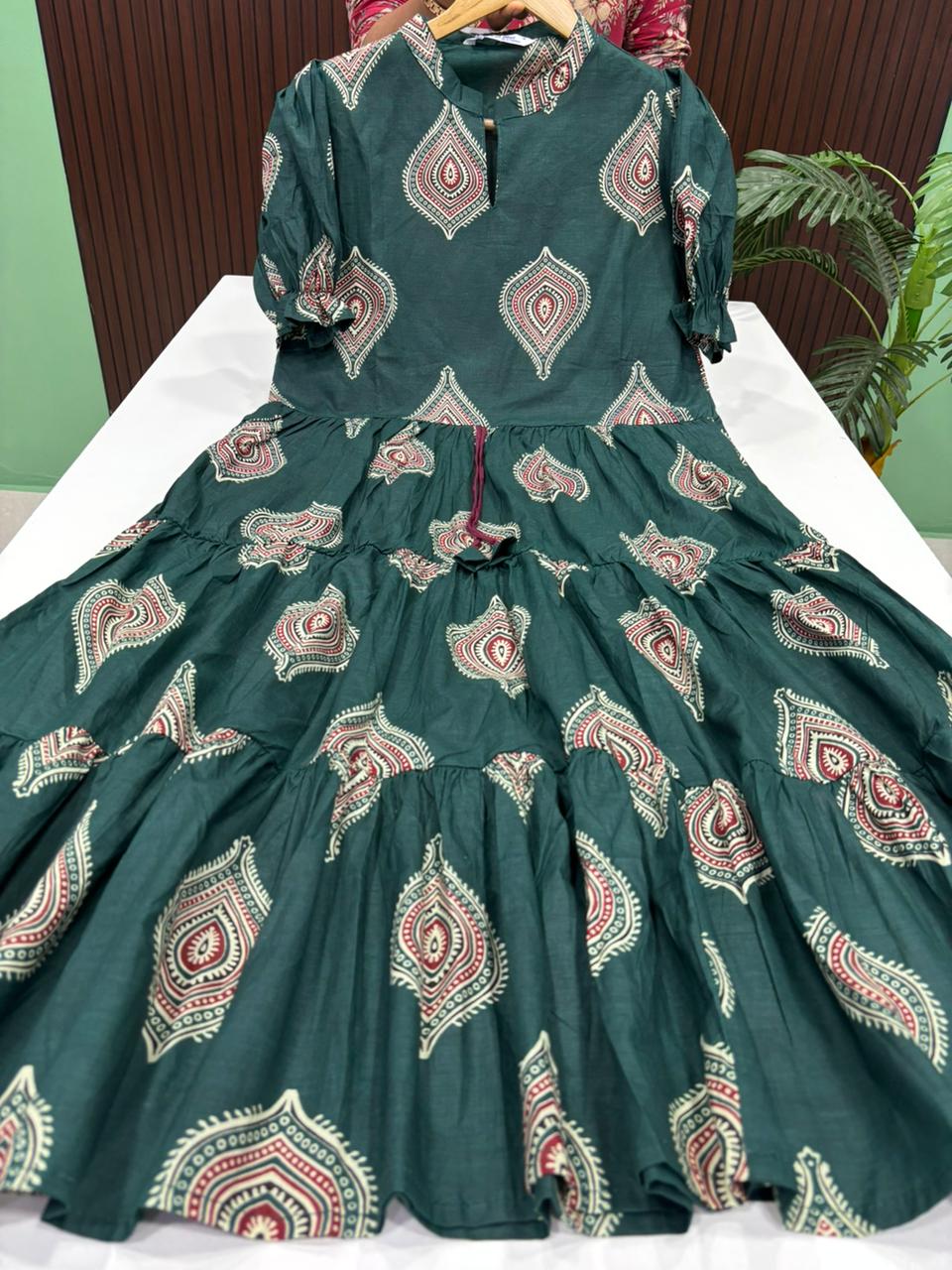 Kalamkari Style Mul Cotton Maxi With Lining Sleeve- 3/4th sleeves Fabric: Mul Cotton Length: 44 inches