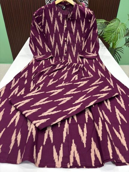 Ikkat Cotton Co-ord Set Top Stitched With Side Pocket Fabric: Cotton Top Model : Side Open Pant : Straight Cut