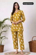Women’s knitted cotton T-shirt with night pant T-shirt length – 25-26.5inchs. Chest Size chart M-36 inches L- 38 inches Xl