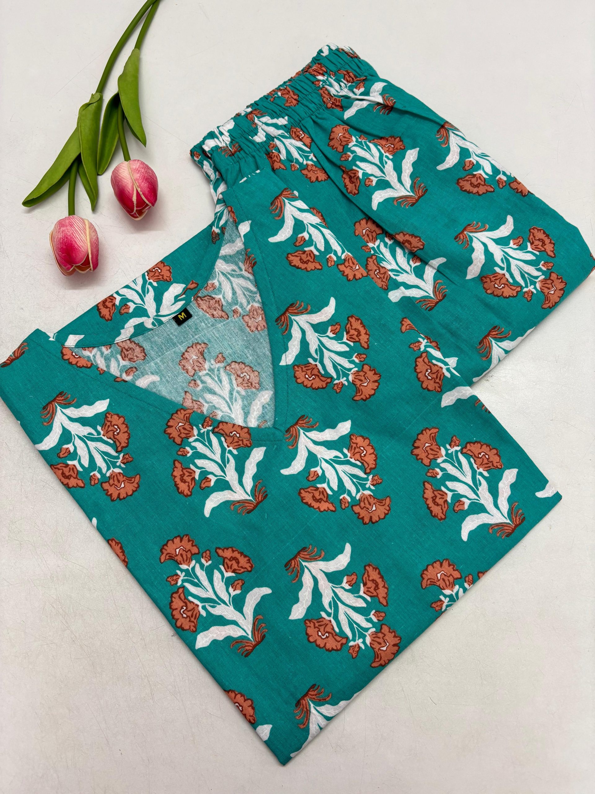 Women’s Cotton Night Suit Elasticated waist With side pocket on the pant Fabric: Cotton Measurements: Top Length – 30 to