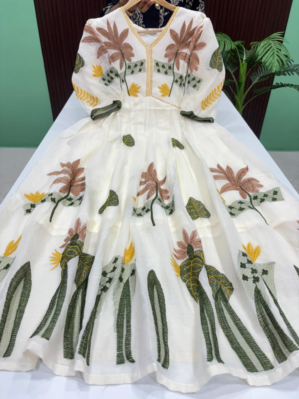 Full Flared Embroidered Mul Cotton Maxi With Lining