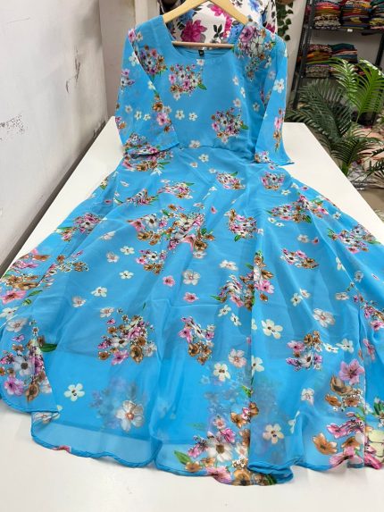 Georgette Frock With Handwork on yoke portion Stitched With Crepe Lining Fabric: Georgette Length: 46 Inches