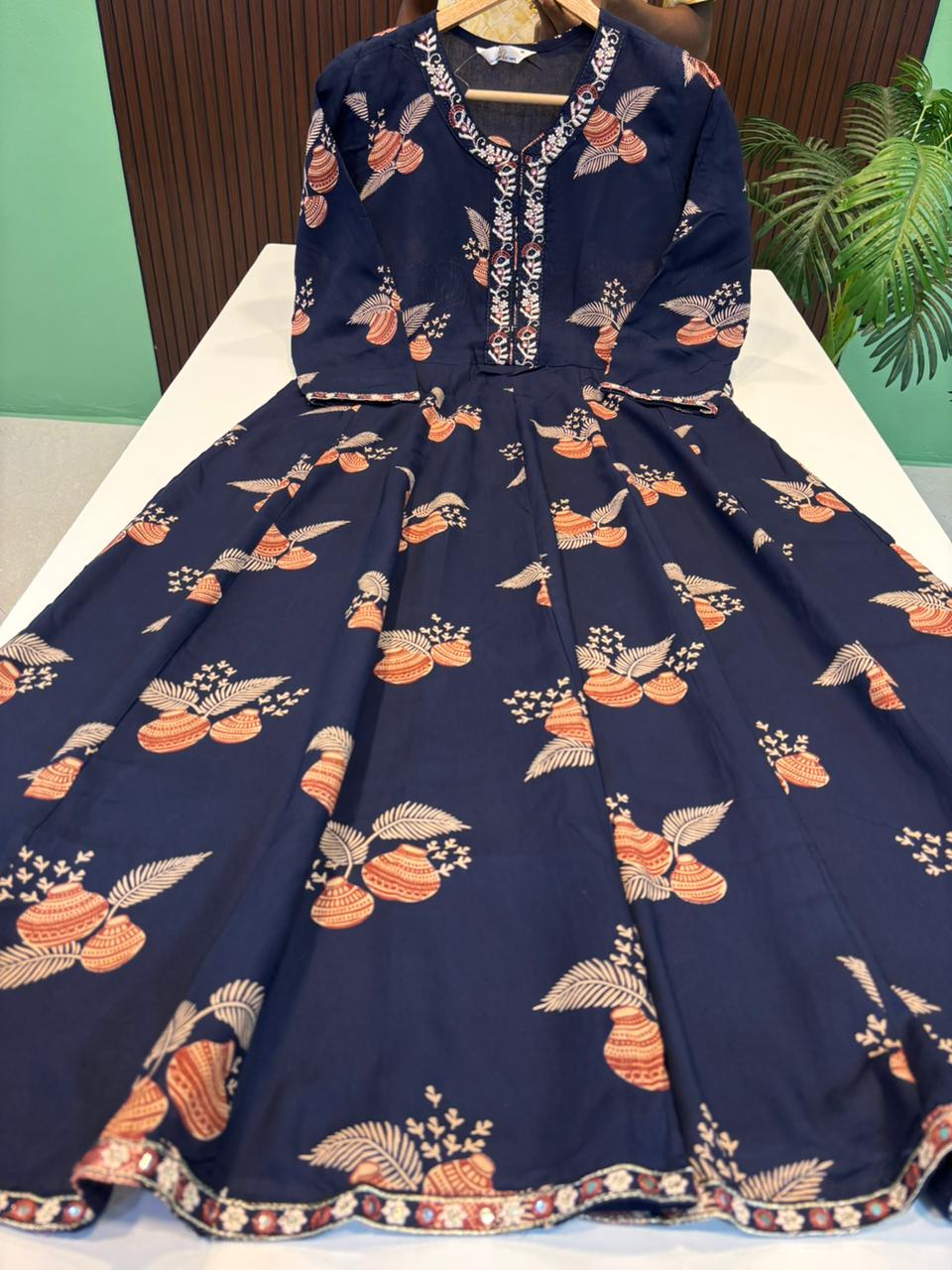Panel Cut Anarkali Kurtis Embroidery & Sequence Work on the yoke Portion Fabric: Rayon Sleeve-3/4 Kurti Lenth : 46 inches