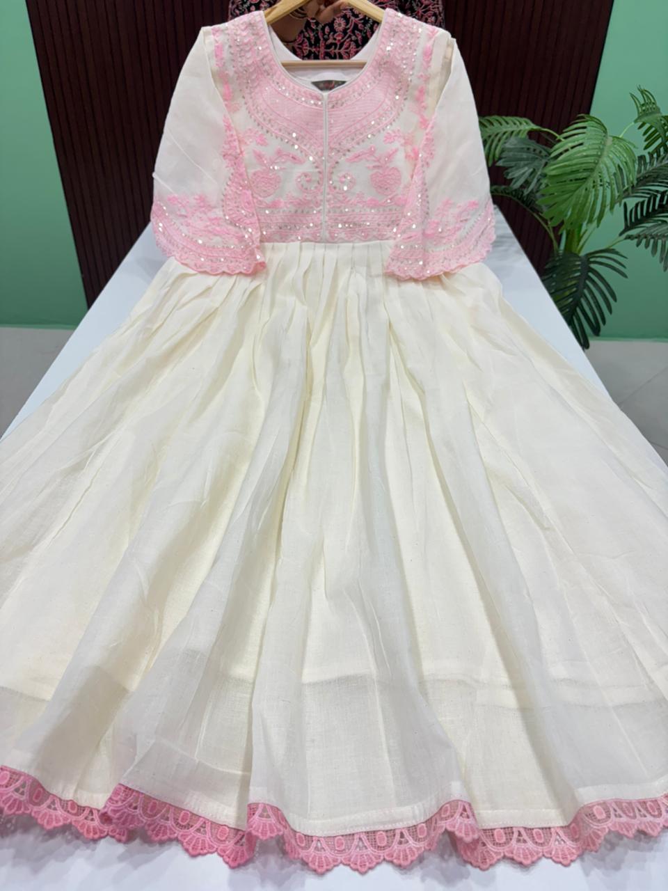 Full Length Mul Cotton Flared Maxi With Lining Fabric: Mul Cotton Length : 51 inches SIZE CHART L 40 INCHES