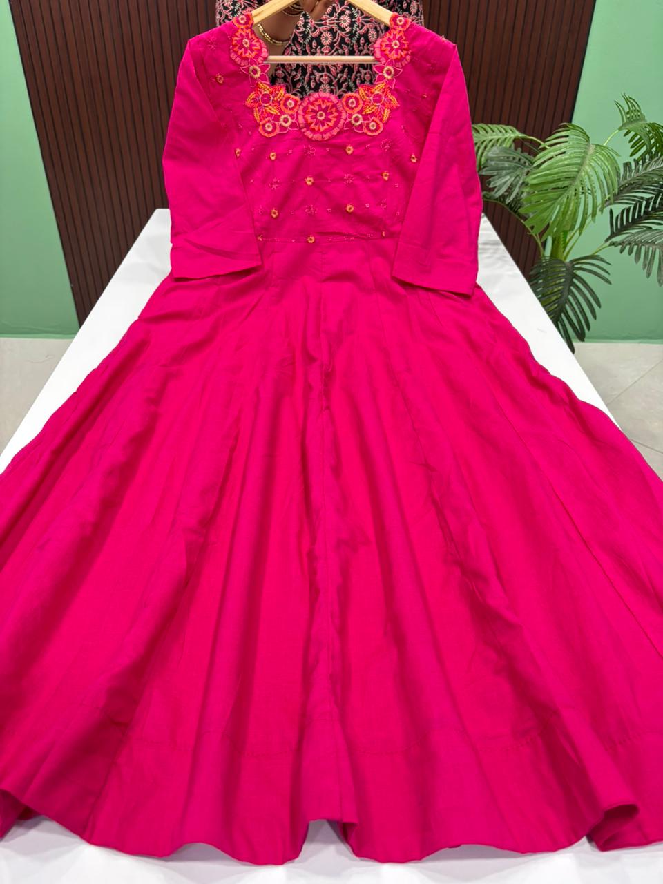 Premium Roman Silk Gown Stitched with crepe lining and back rope Fabric: Roman Silk Length : 49 inches
