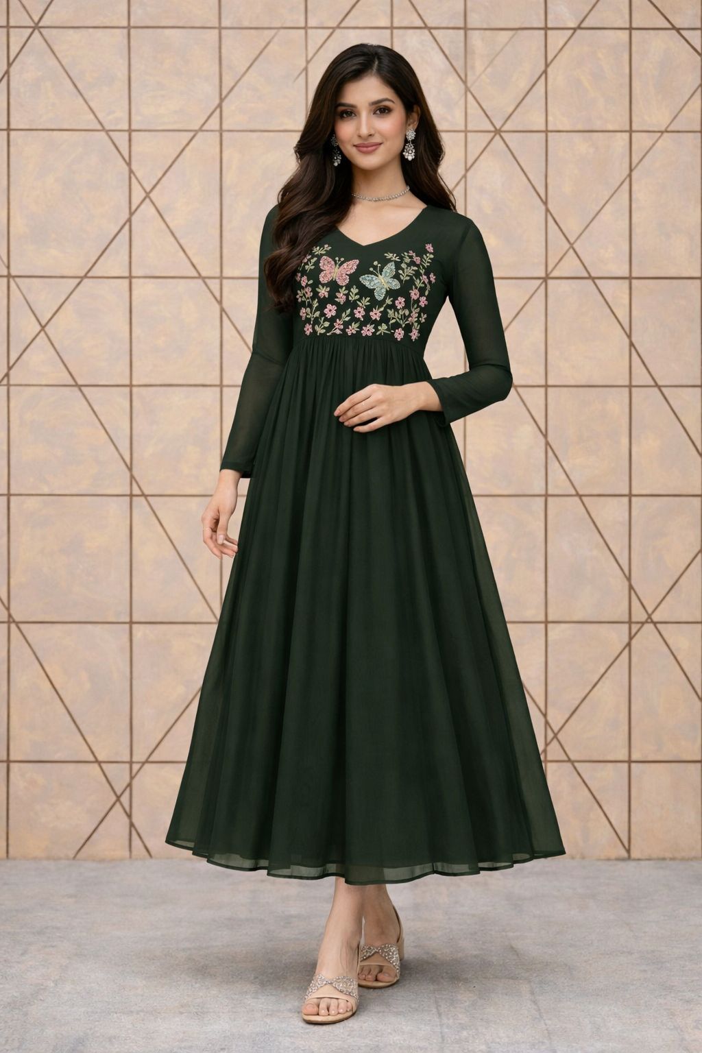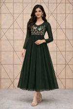 Georgette A Line Frock With Crepe Lining Intricate handwork beautifully crafted on the yoke Portion Length : 45 to 46
