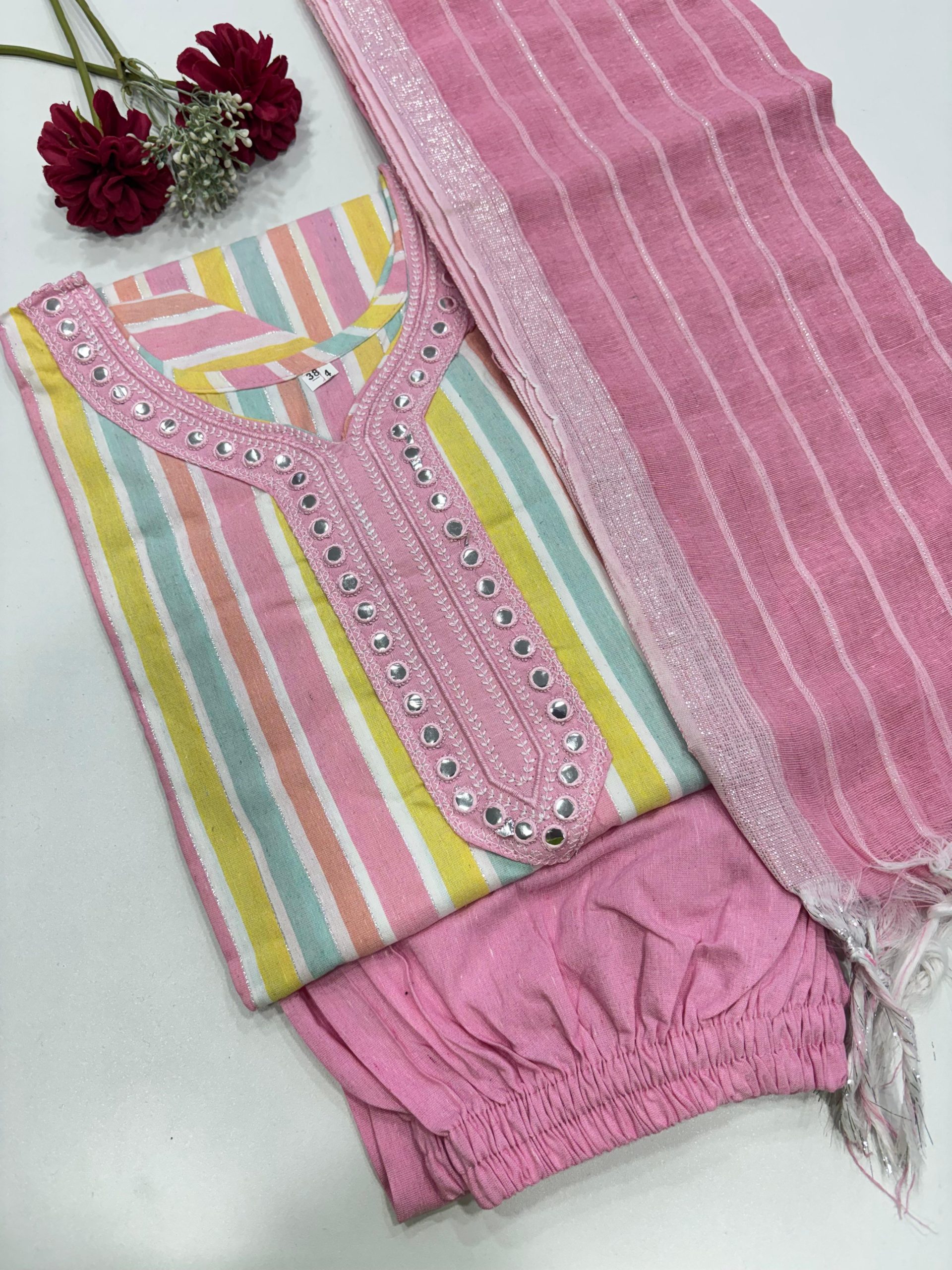 Handloom Cotton Kurti With Pant & Dupatta Set Fabric: Handloom Cotton Kurti Length : 40 to 41 inches Pant Length: