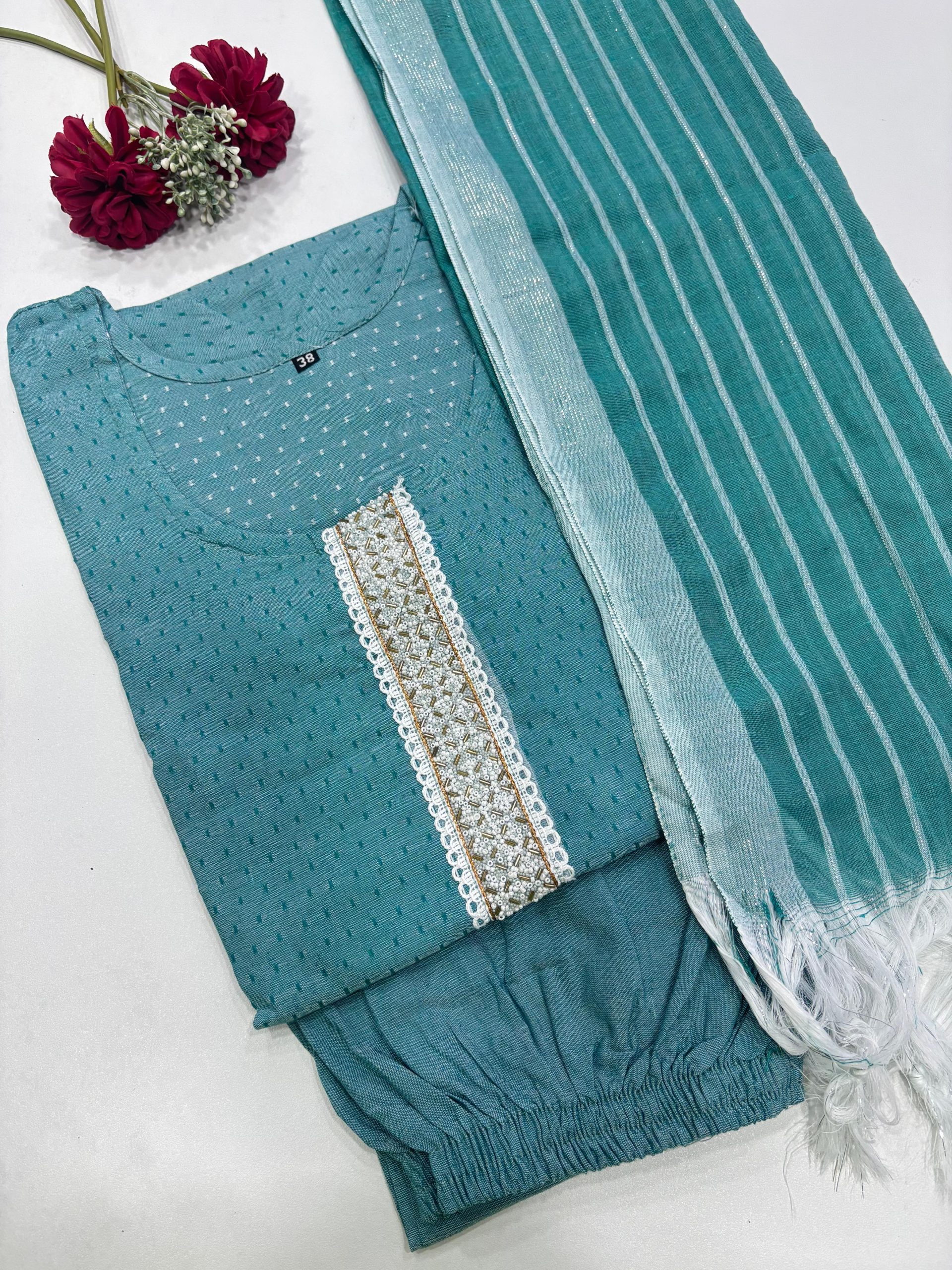 Handloom Cotton Kurti With Pant & Dupatta Set