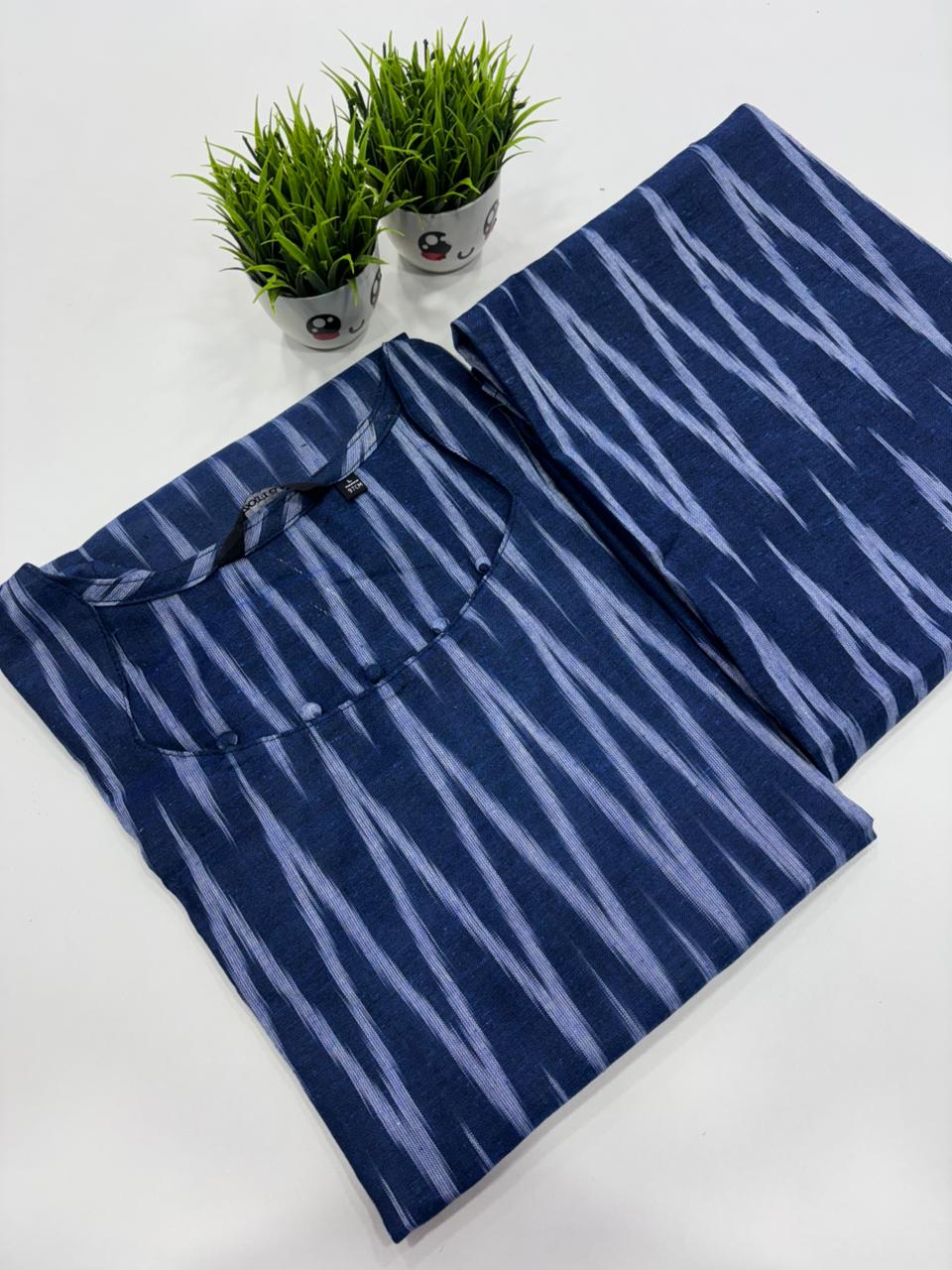 Ikkat Cotton Co-ord Set Top Stitched With Side Pocket Fabric: Cotton Top Model : Side Open Pant : Straight Cut