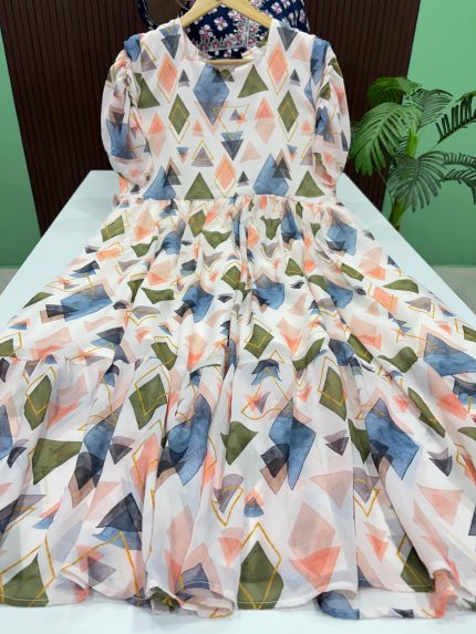 Flared Georgette Maxi Stitched With Crepe Lining Length: 45 to 46 inches SIZE CHART M 38 INCHES L 40 INCHES