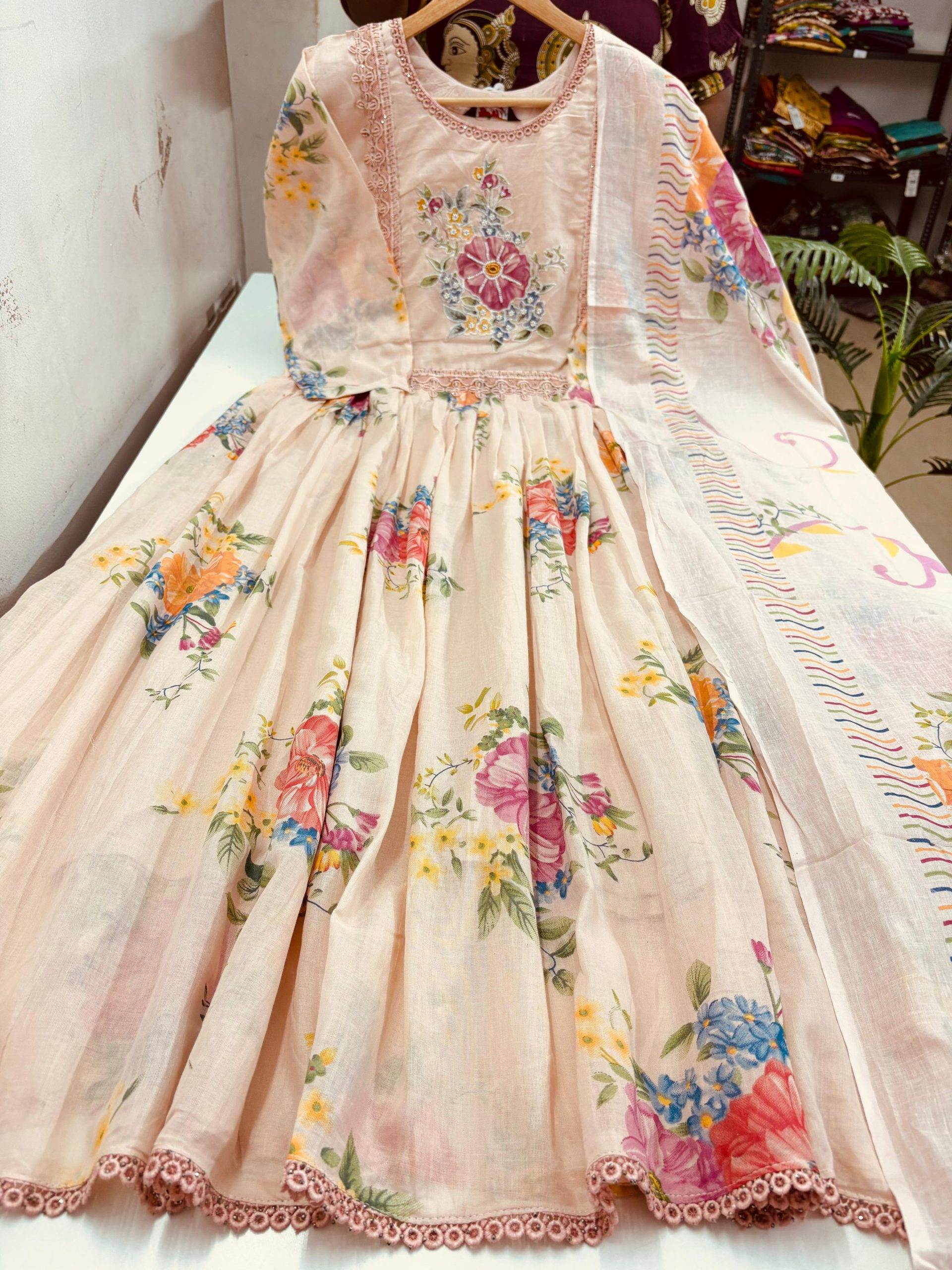 Be the first to review “Mul Cotton Gathered Anarkali With Dupatta Set” Cancel reply