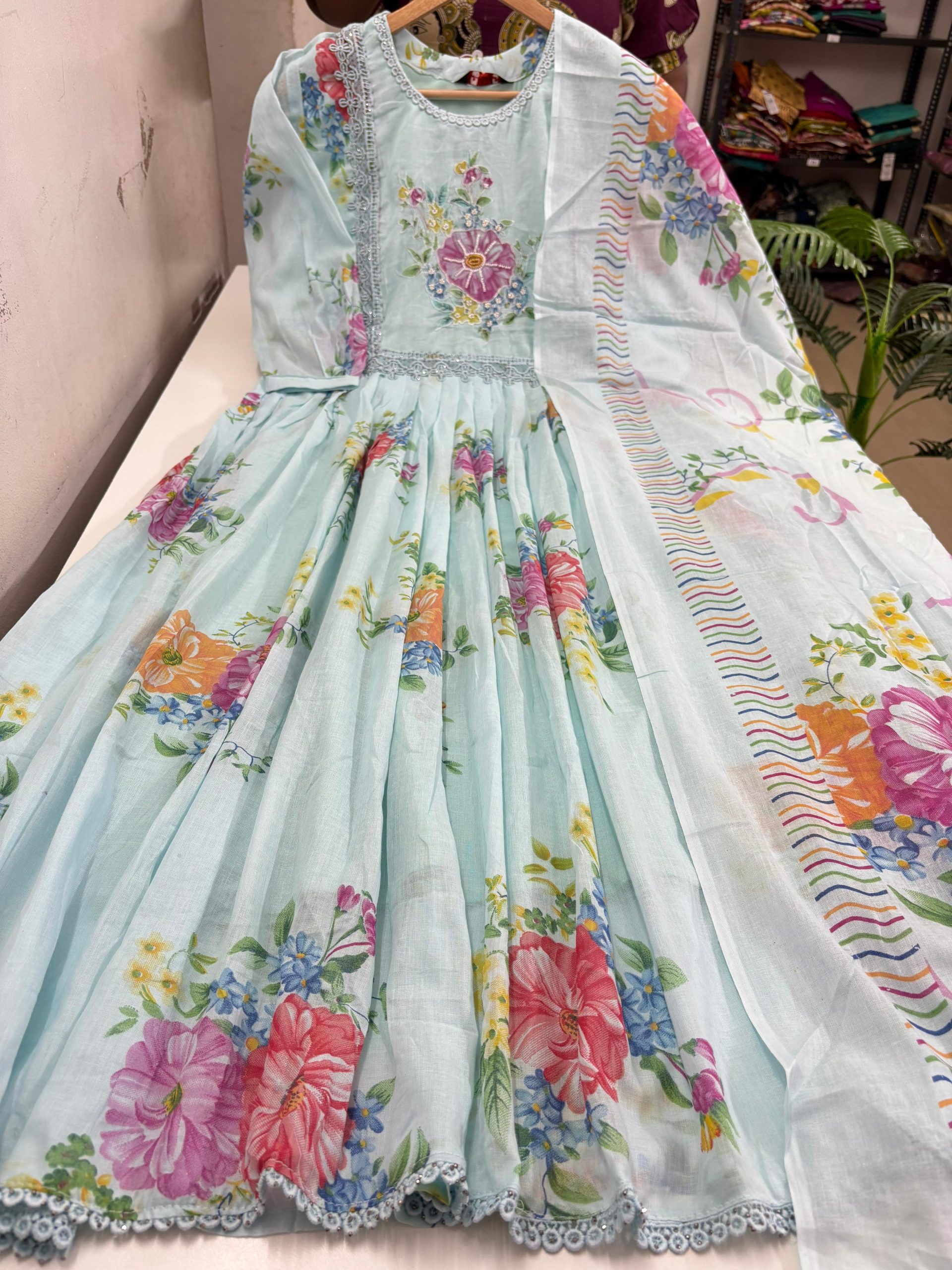 Premium Mul Cotton Floral Printed Heavy Flare Gathered Anarkali With Dupatta Set With Lining Fabric: Mul Cotton Anarkali Length :