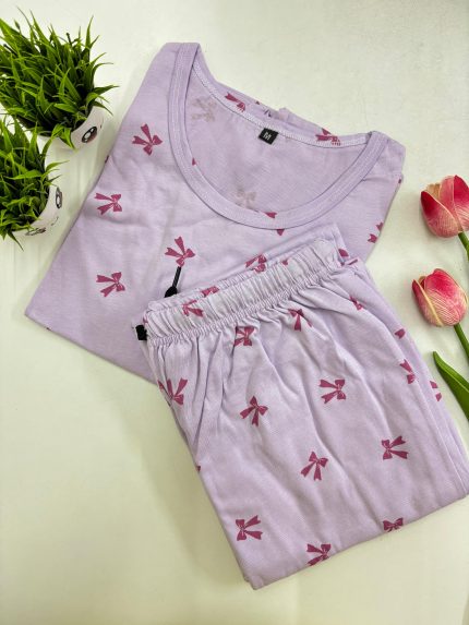 Women’s knitted cotton T-shirt with night pant T-shirt length – 25-26.5inchs. Chest Size chart M-36 inches L- 38 inches Xl