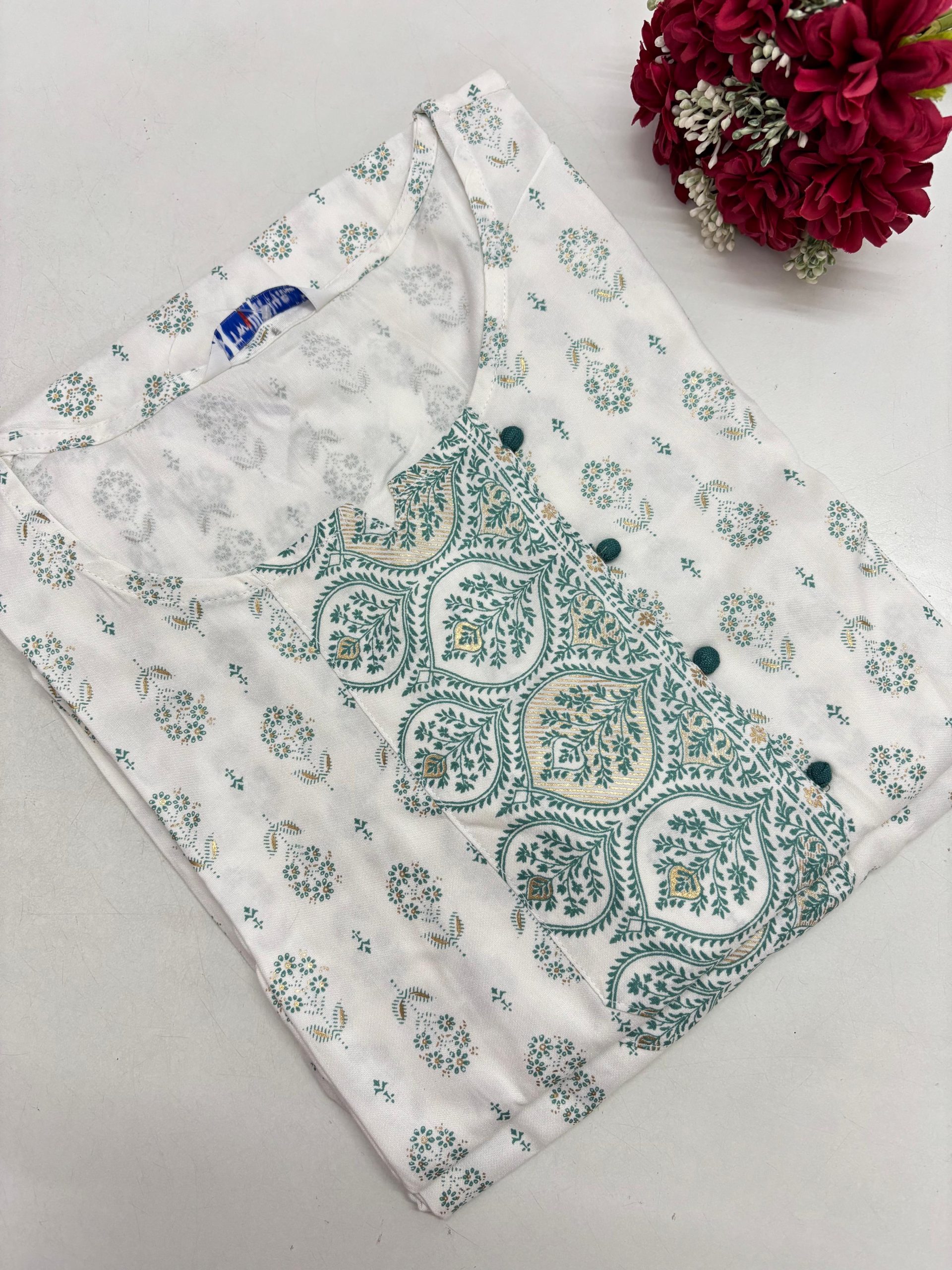 Office Wear Rayon Side Open Kurti Embroidery Work on the yoke portion Fabric : Rayon Length: 41 to 42 inches