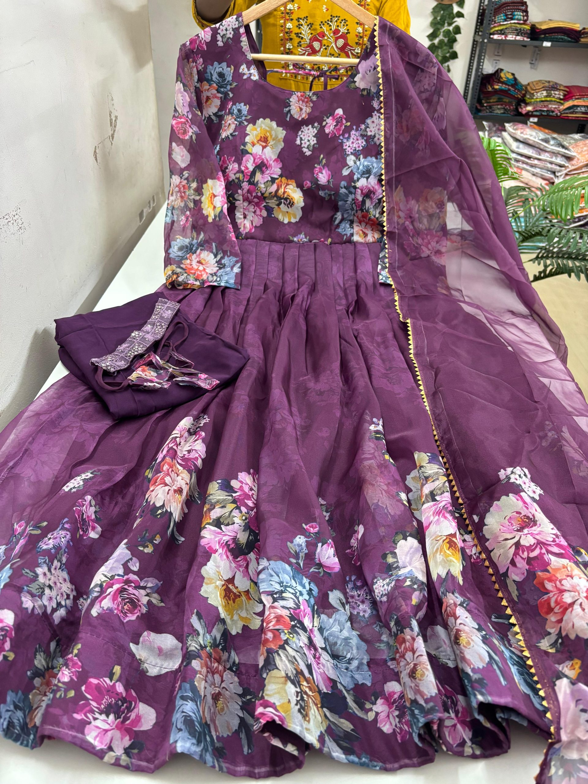 Organza Umbrella Top with pant and Dupatta Set