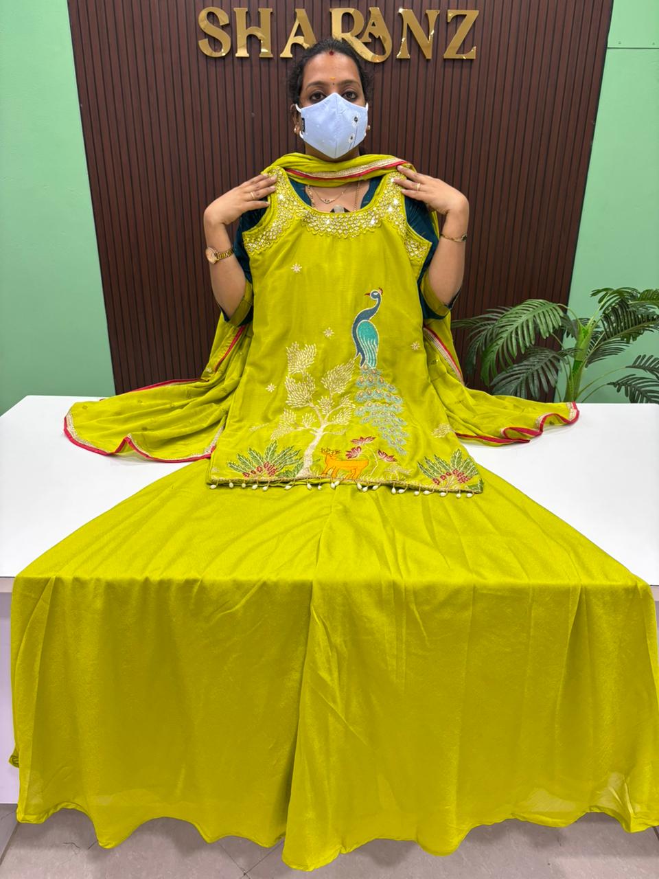 Festive wear Premium Crushed Chiffon Sharara Suit with Lining