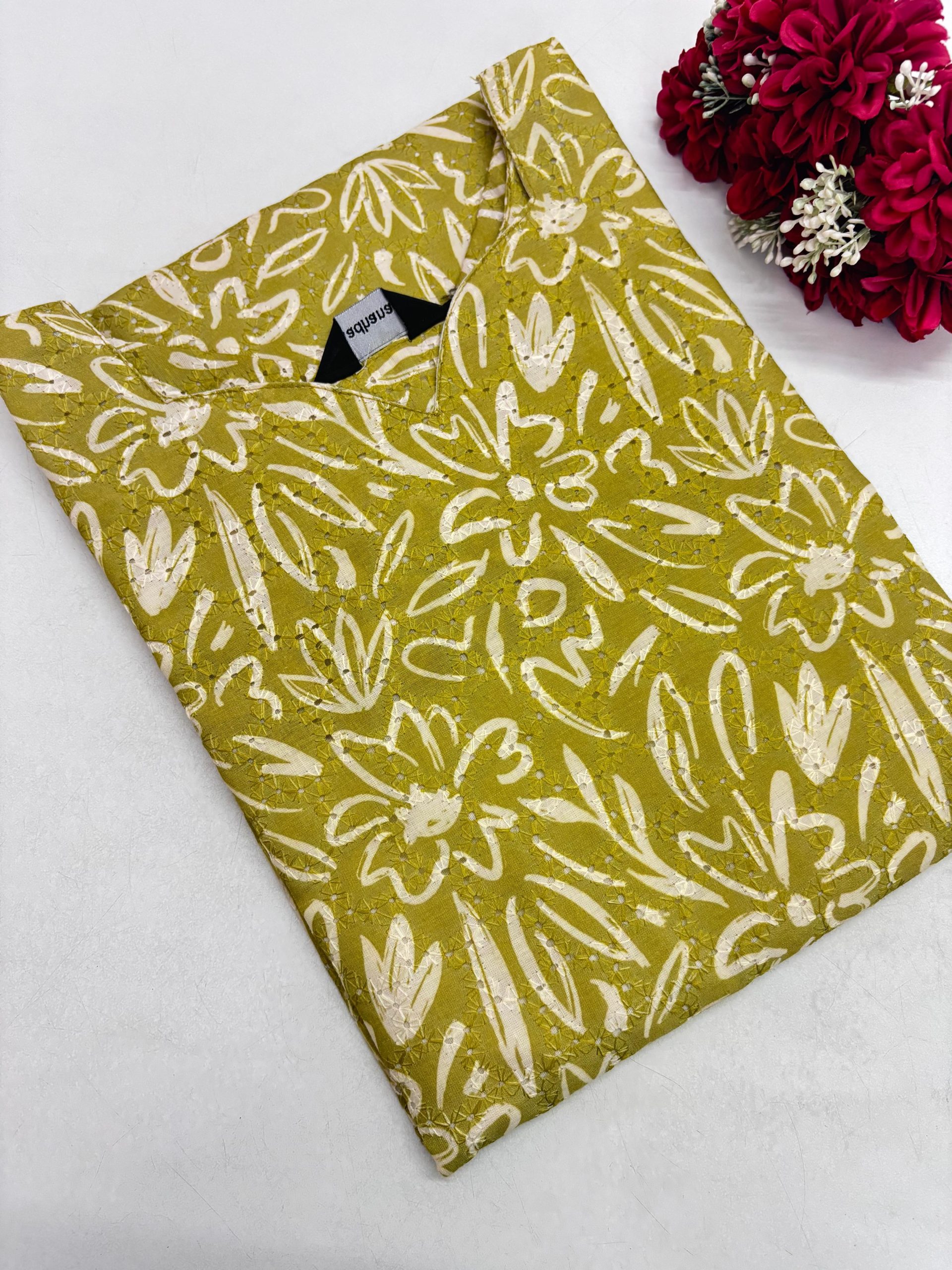 Premium Handloom Cotton Embroidery Side Open Kurti With Side Pocket Fabric: Handloom Cotton Length: 40 inches