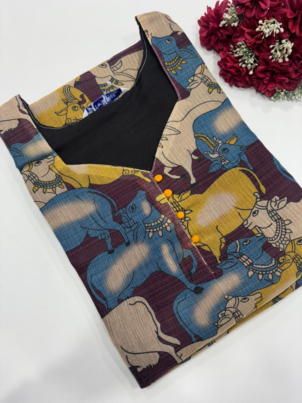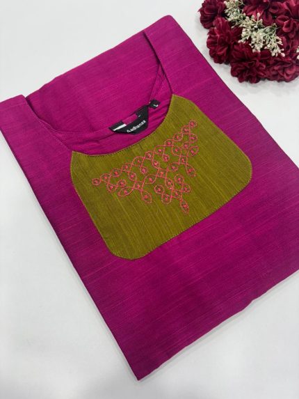 Premium Handloom Cotton Embroidery Side Open Kurti With Side Pocket Fabric: Handloom Cotton Length: 40 inches