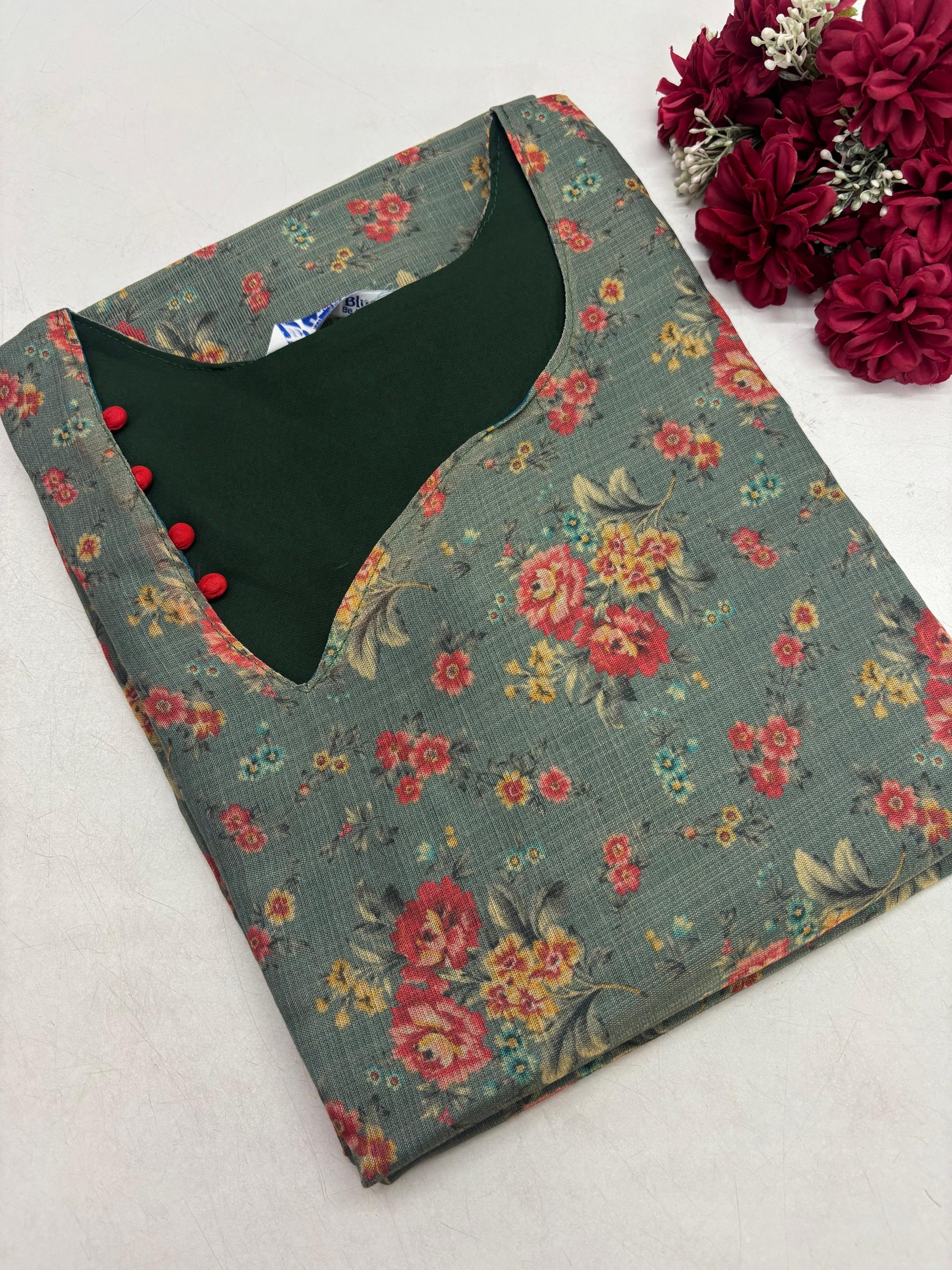 Festive Wear Printed Silk Side Open Kurti With Pocket & beautiful neck design Fabric: Silk Kurti Length: 41 inches