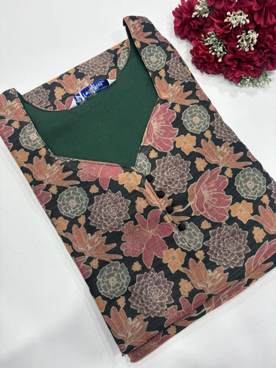 Digital Printed Muslin Side Open Kurti With Lining Fabric: Muslin Length: 42 inches Sleeves: 3/4th sleeves