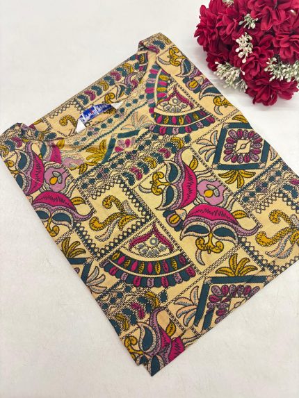 Festive Wear Printed Silk Side Open Kurti With Pocket & beautiful neck design Fabric: Silk Kurti Length: 41 inches