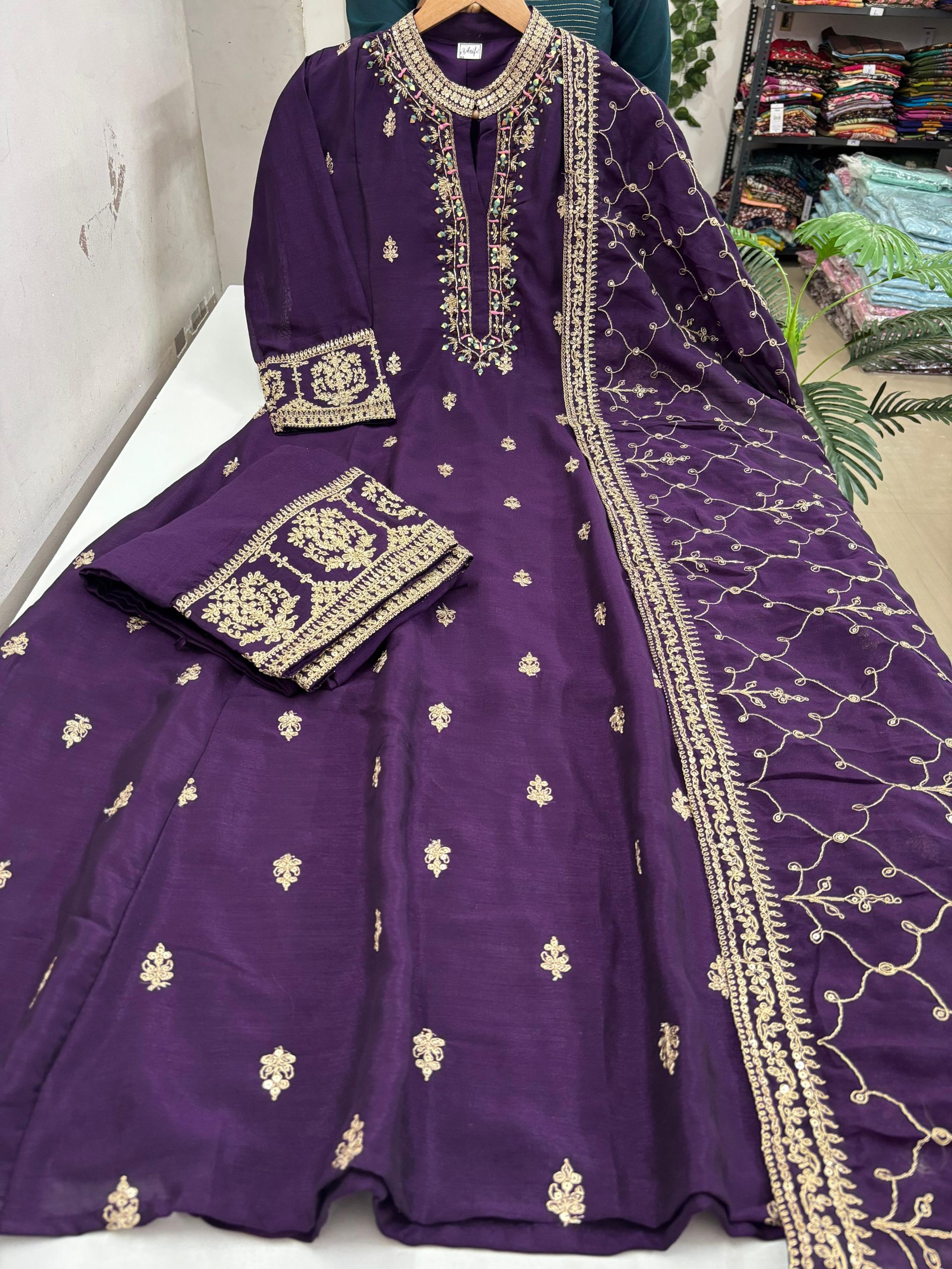 Be the first to review “Premium Vichitra Silk Anarkali Set” Cancel reply