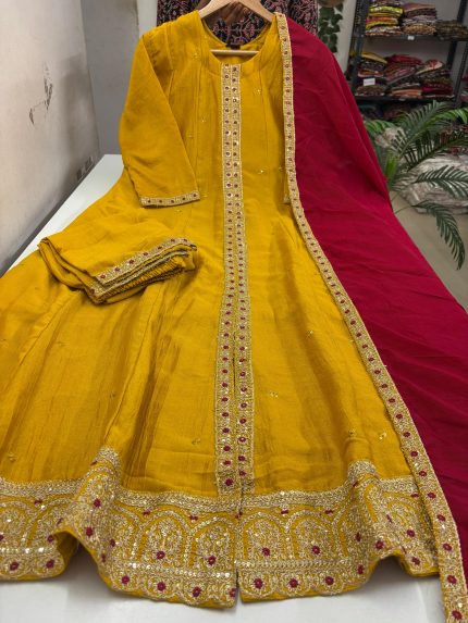 Festive wear Premium Vichitra Silk Anarkali With pant & Dupatta Set Top and bottom With Lining Fabric: Vichitra Silk Top