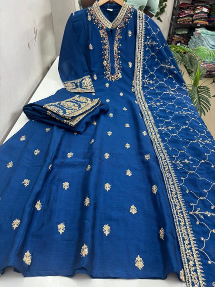 Be the first to review “Premium Vichitra Silk Anarkali Set” Cancel reply