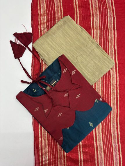 Raw Silk Kurti With Pant & Dupatta Set