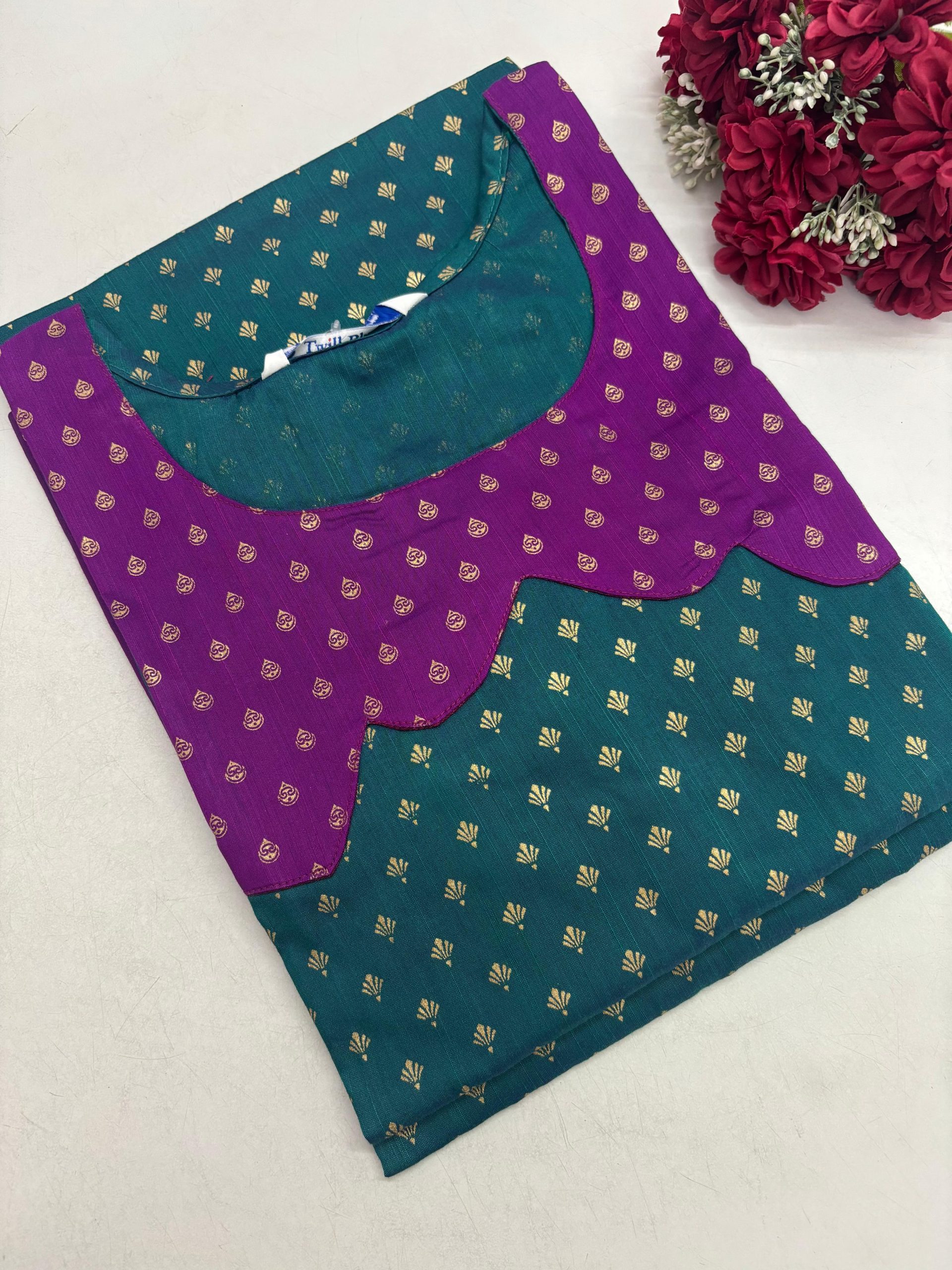 Festive Wear Printed Silk Side Open Kurti With Pocket & beautiful neck design Fabric: Silk Kurti Length: 41 inches