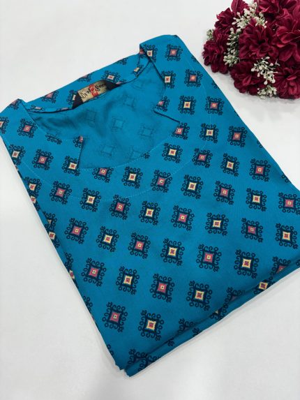 Regular Wear Side Open Kurti Sleeve-3/4 Material – Rayon LENGTH 44 INCHES SIZE CHART M 38 INCHES L 40 INCHES