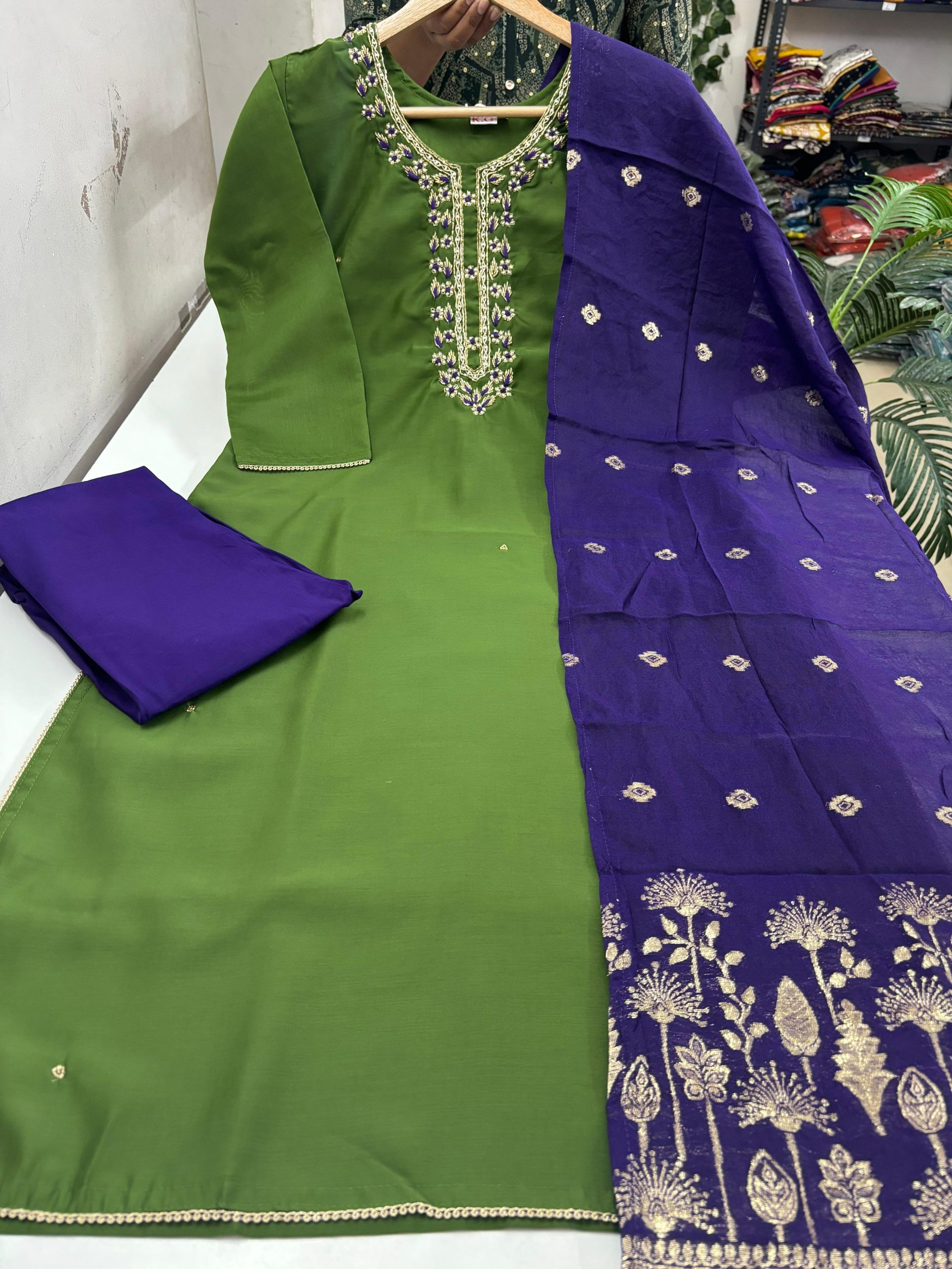 Premium Festive Wear Kurti With Pant & Dupatta Set With Lining Fabric: Vichitra silk Kurti Length : 44 inches Pant