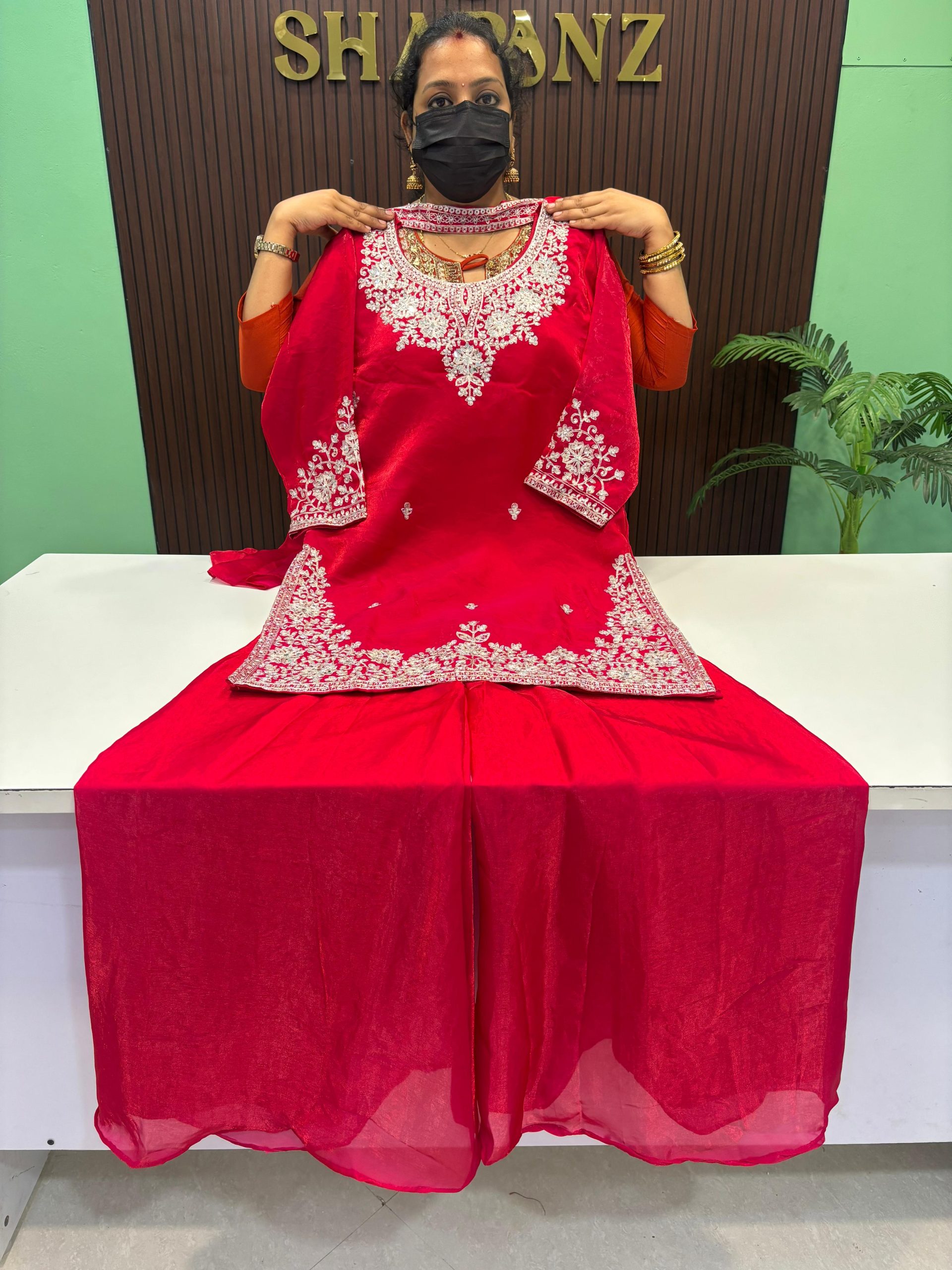 Festive wear Satin Silk Sharara Suit With Lining Top Length : 34 to 35 inches, Palazzo Length : 38 to