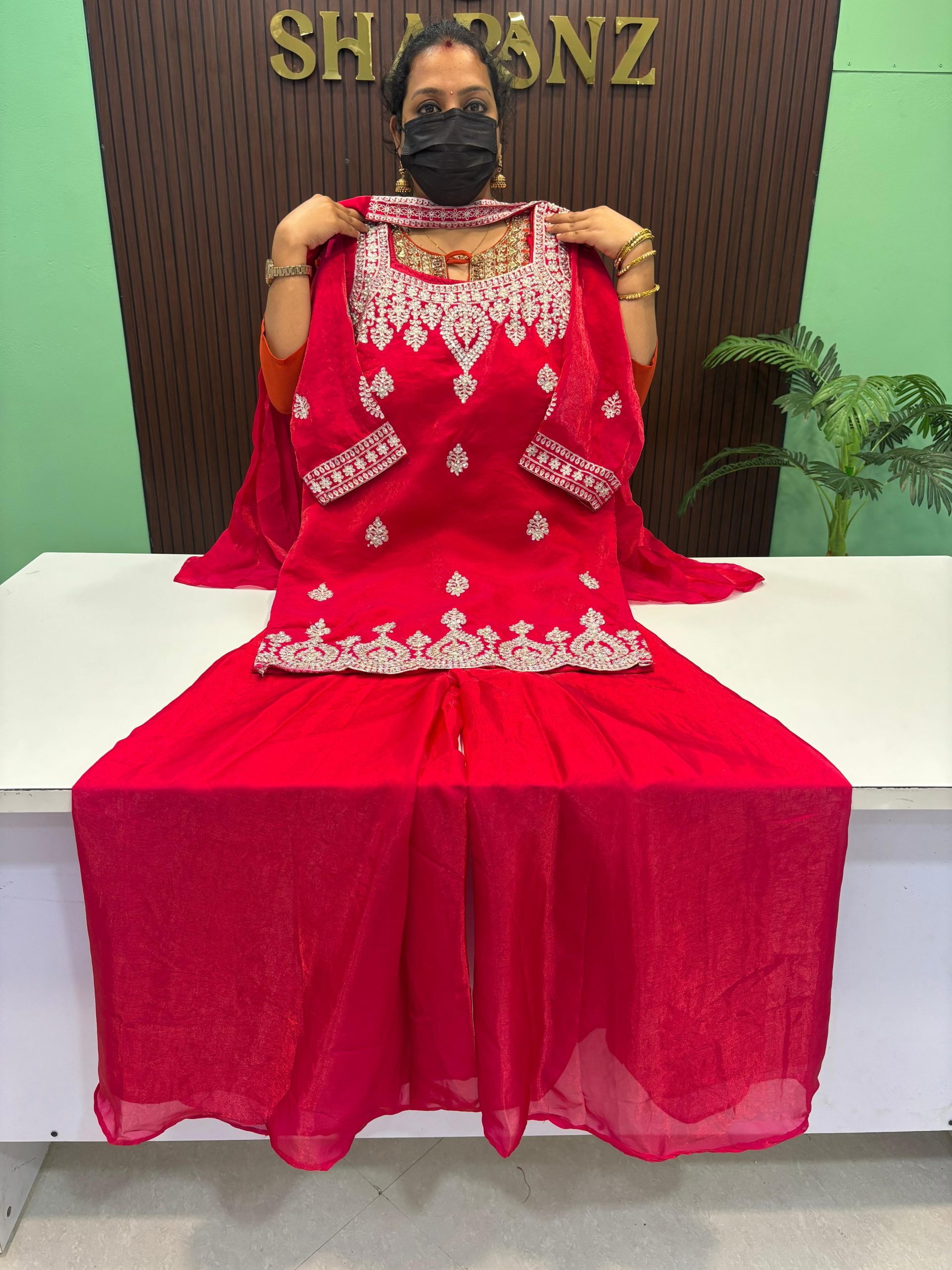 Festive wear Tissue Sharara Suit With Lining Top Length : 41 to 42 inches, Palazzo Length : 39 inches, Top
