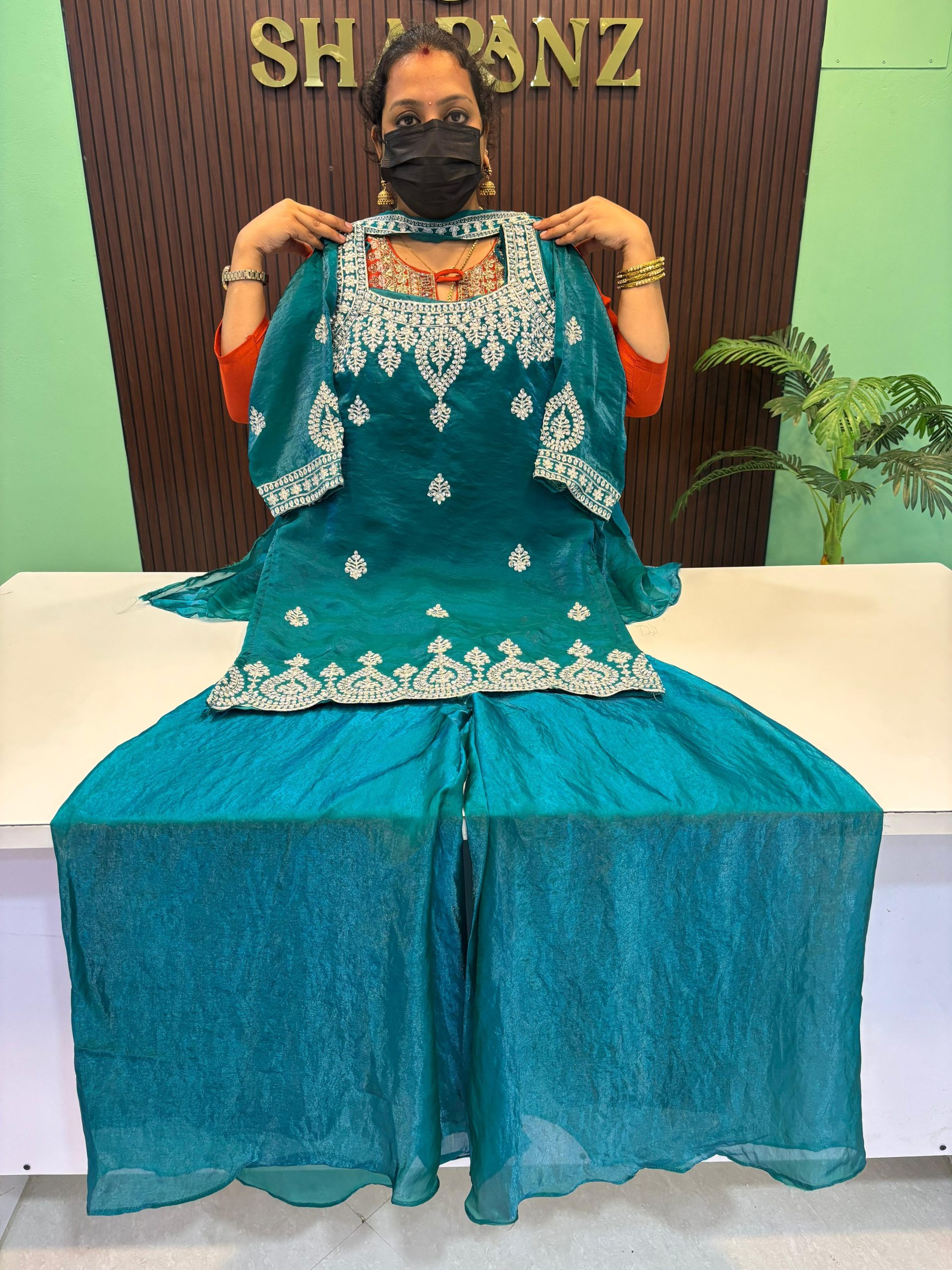 Festive wear Premium Chinnon Sharara Suit With Lining Top Length : 33 inches, Palazzo Length : 40 inches, Fabric: Chinnon