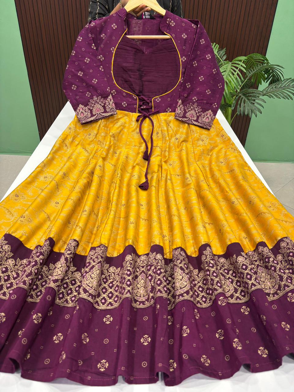 Vatican Silk Anarkali With Lining Back rope attached Fabric: Vatican Silk Length: 47 to 48 inches Sleeves: 3/4th sleeves