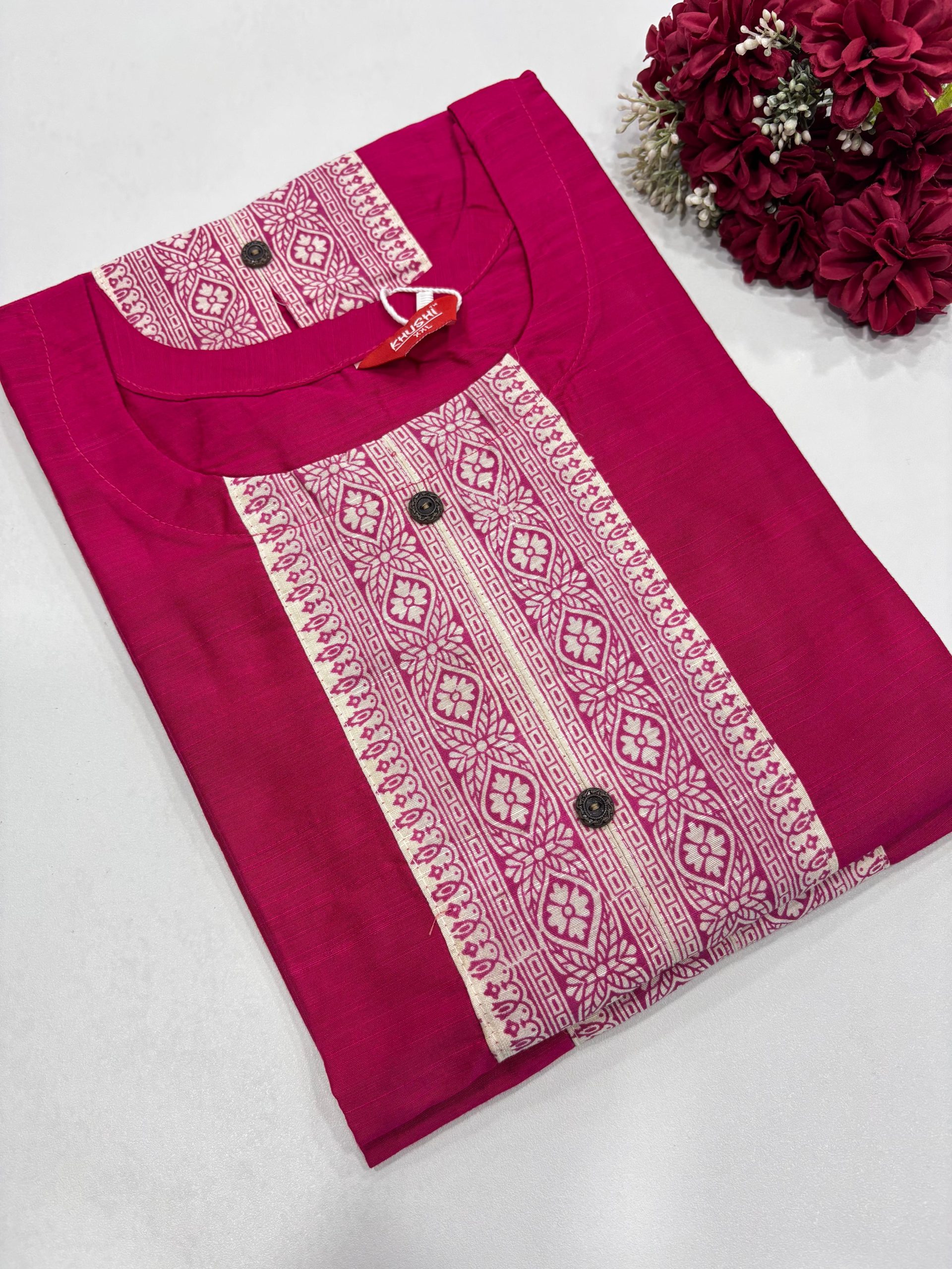 Regular Wear Side Open Kurti Sleeve-3/4 Material – Rayon LENGTH 41 INCHES SIZE CHART M 38 INCHES L 40 INCHES XL 42