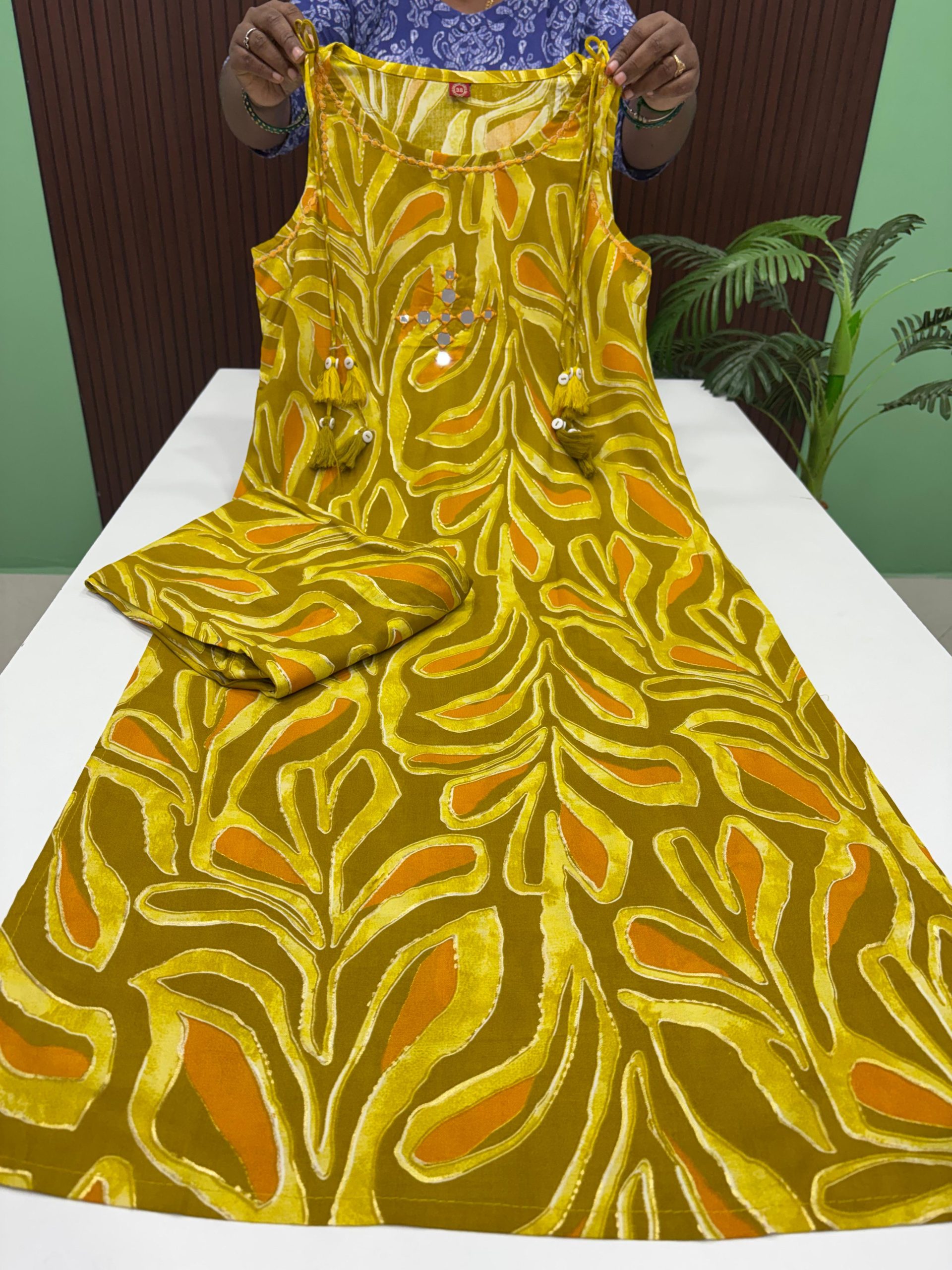 Kalamkari Printed Co-ord Set Fabric: Mixed Cotton Kurti Length: 44 to 45 inches Pant Length: 38 inches SIZE CHART M