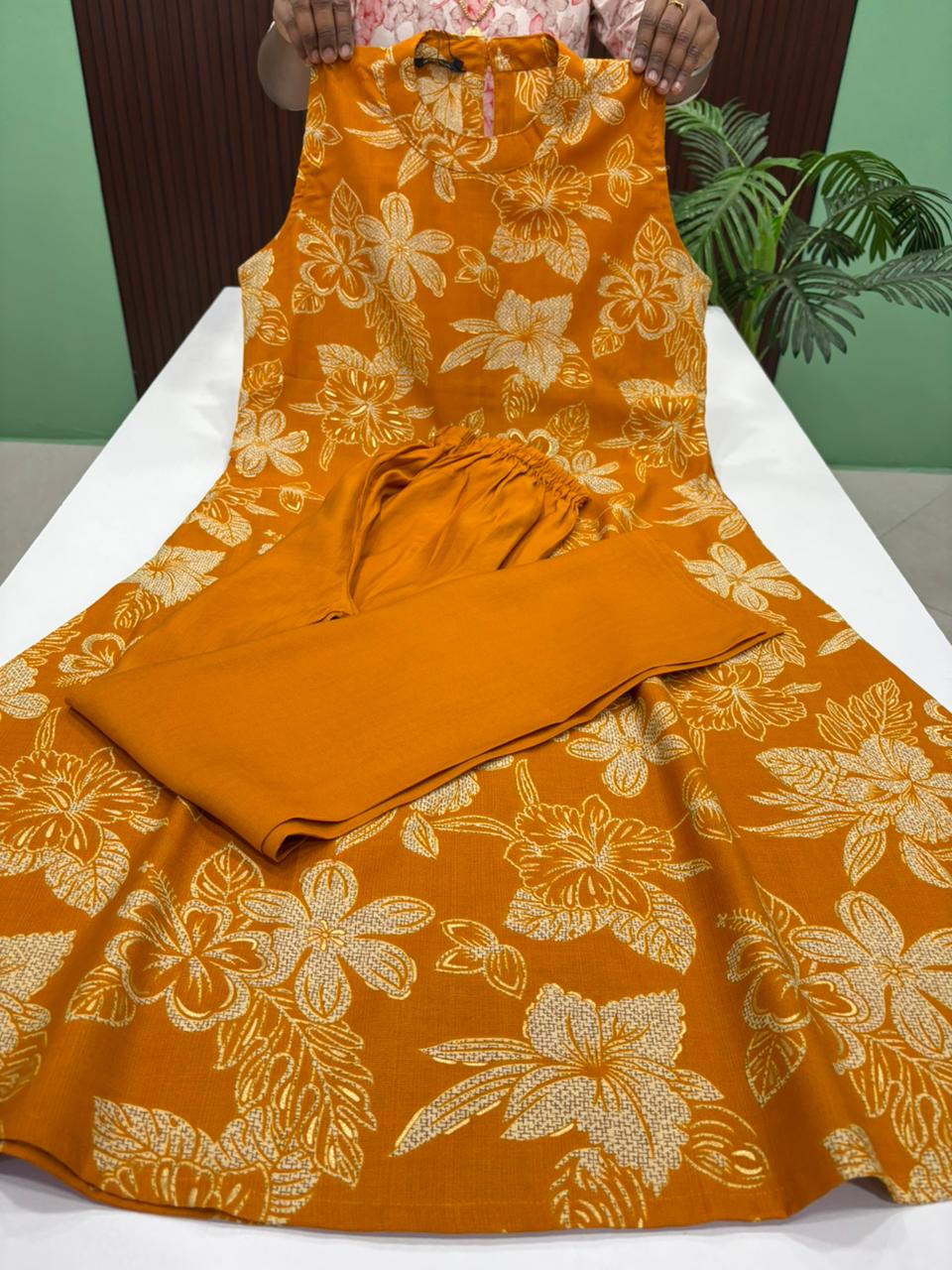 Trendy Rayon Co-ord Set Hand – Sleeveless (Sleeves available Inside) Pant Stitched With Side Pocket Yoke portion adorned with original