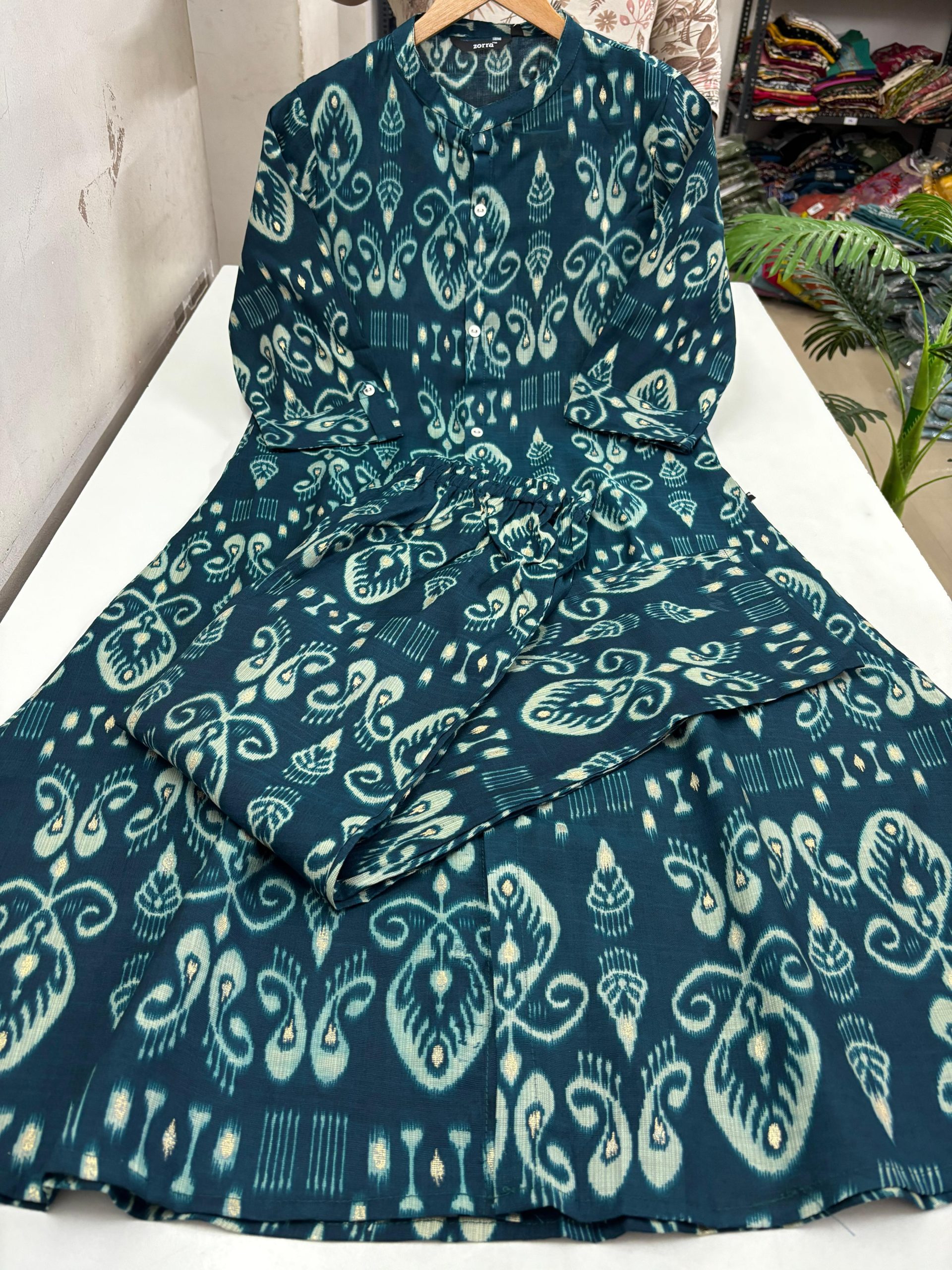 A Line Co-ord Set Fabric: Rayon Kurti Model: A Line Kurti With Pocket Back Rope Attached Kurti Length: 44 inches