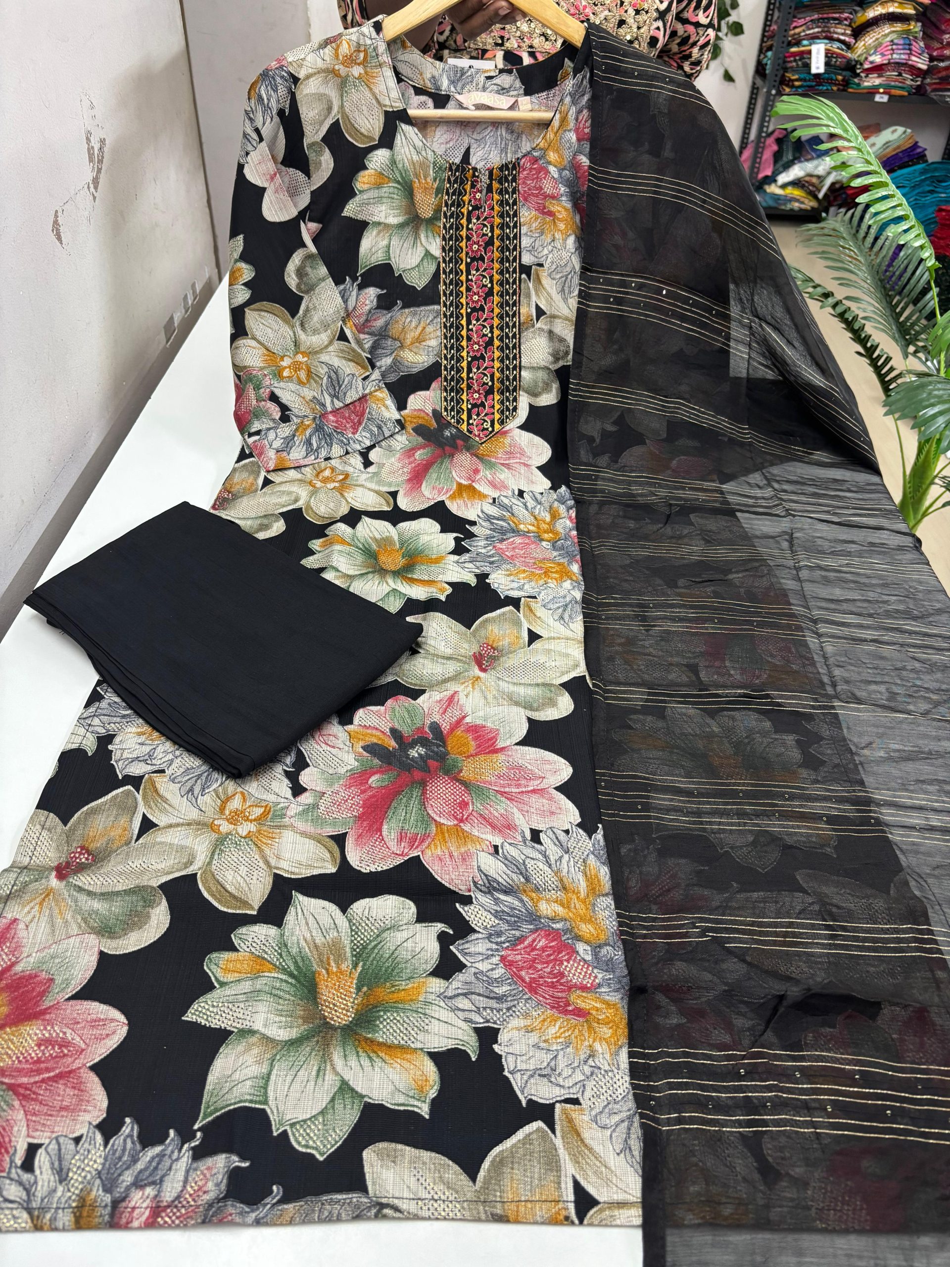 Raw Silk Kurti With Pant & Dupatta Set Stitched with Cotton Lining Fabric: Raw Silk Kurti Length : 43 inches